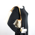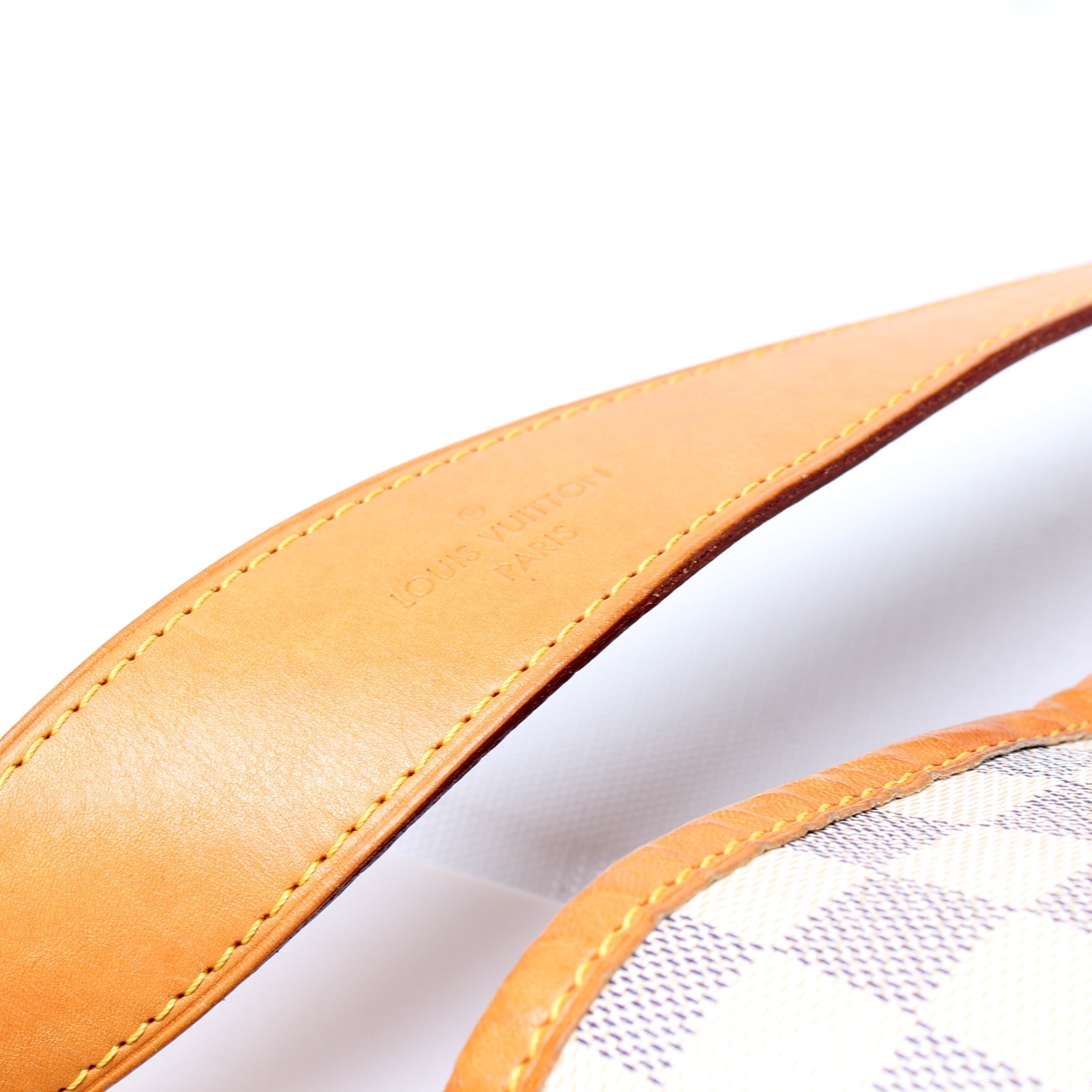 Strap: The leather shoulder strap shows minor discoloration and scuffs.