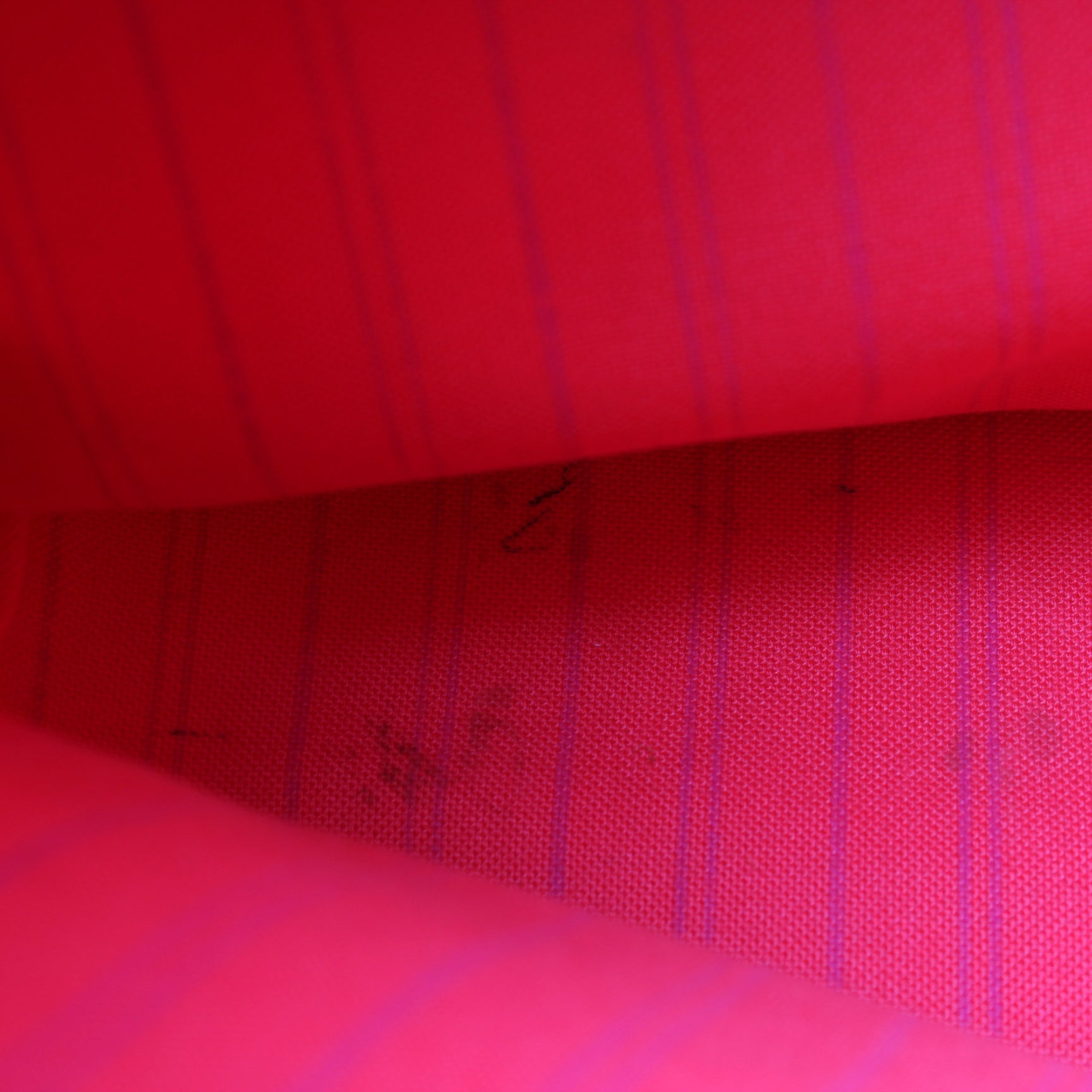 Interior: The interior is free of rips or tears. The interior features one zip closure pocket. The interior shows pen marks throughout.