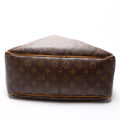 Exterior: The coated canvas is free of rips or cracks. The leather trim shows discoloration and wear throughout. The corners show heavy wear. The pipping shows wear.