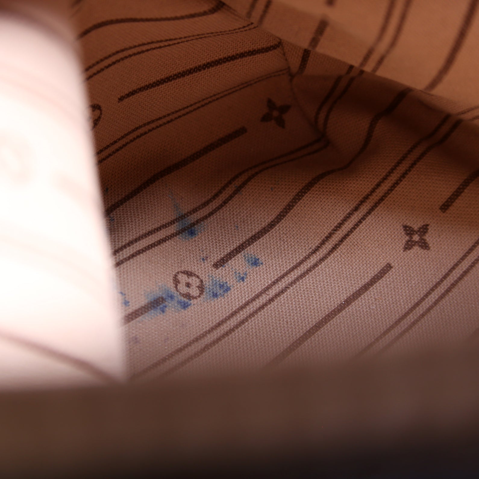 Interior: The interior is free of rips or tears. The interior features one zip pocket. There are ink spots and discoloration to the interior.