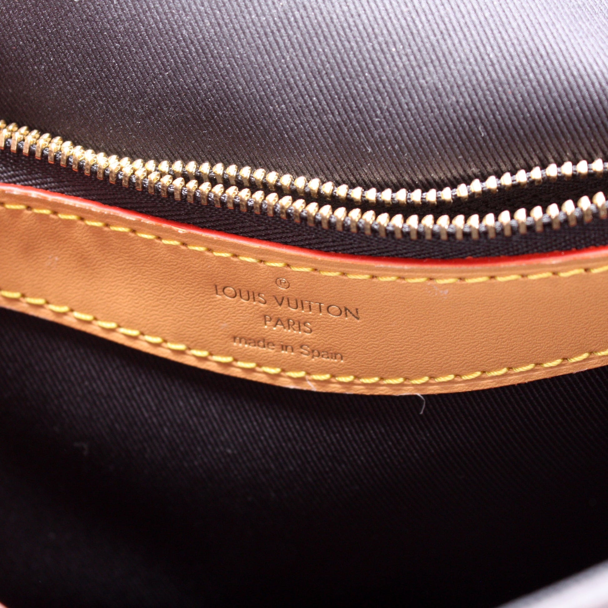 Interior: The interior is free of rips or tears. The interior features one zip closure pocket.