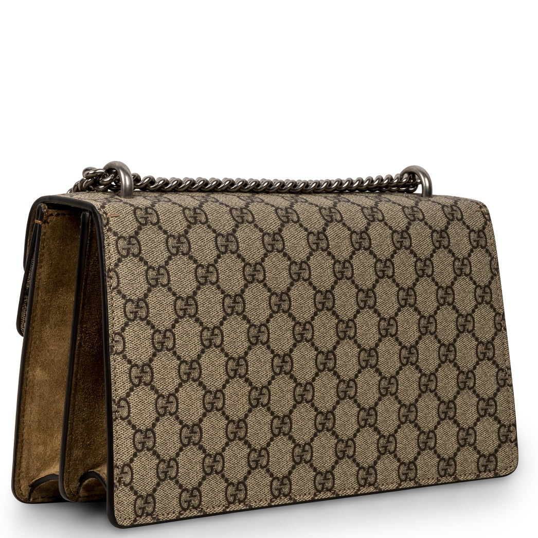 Inspired by the Greek God of wine and celebration, the Gucci Dionysus is an absolute must have for any woman with a love for luxury and a special spot for monograms. An instant classic, the Dionysus has become one of the most coveted bags of the past five years. The perfect companion for any and every occasion, you can easily pair your Dionysus with anything in your wardrobe. Decorated with the GG Supreme print and the signature tiger clasp, this shoulder bag can easily fit all your every day essentials comfortably inside. Sleek, stylish and sophisticated, this stunning bag is the perfect balance between feminine and edgy. A classic piece you'll have for life, the Dionysus is one you'll never fall out of love with.