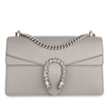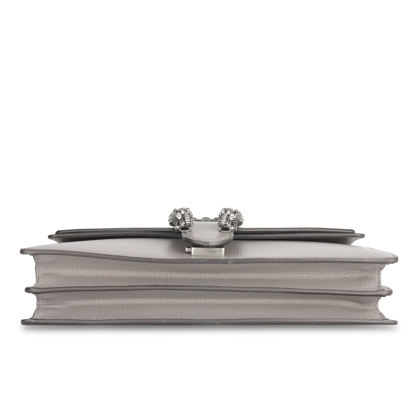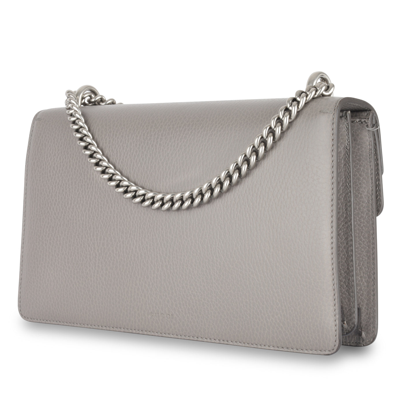 Inspired by the Greek God of wine and celebration, the Gucci Dionysus is an absolute must have for any woman with a love for luxury and a special spot for monograms. An instant classic, the Dionysus has become one of the most coveted bags of the past five years. This particular piece is decorated in grey grained leather and the signature tiger clasp, this shoulder bag can easily fit all your every day essentials comfortably inside.