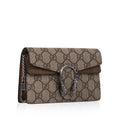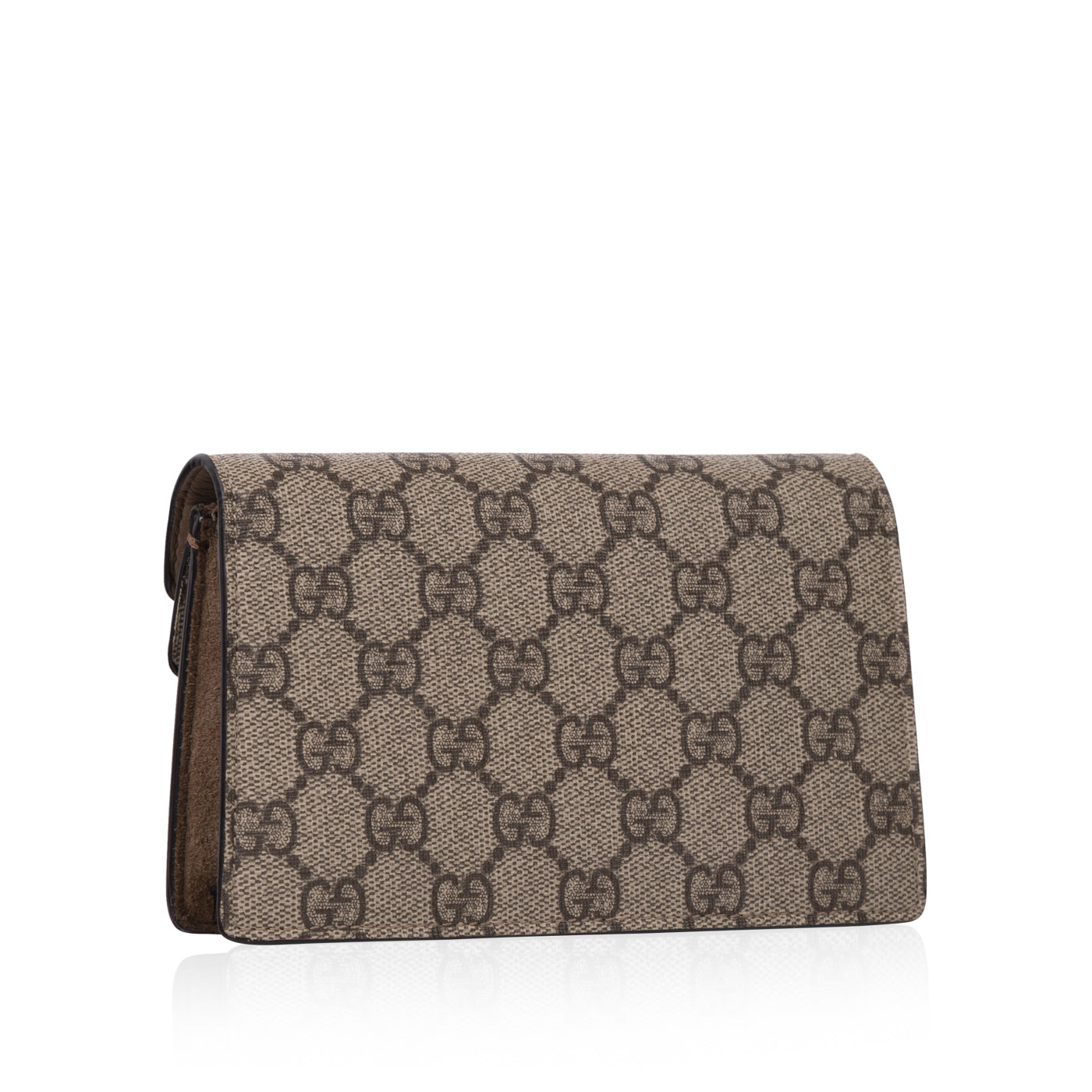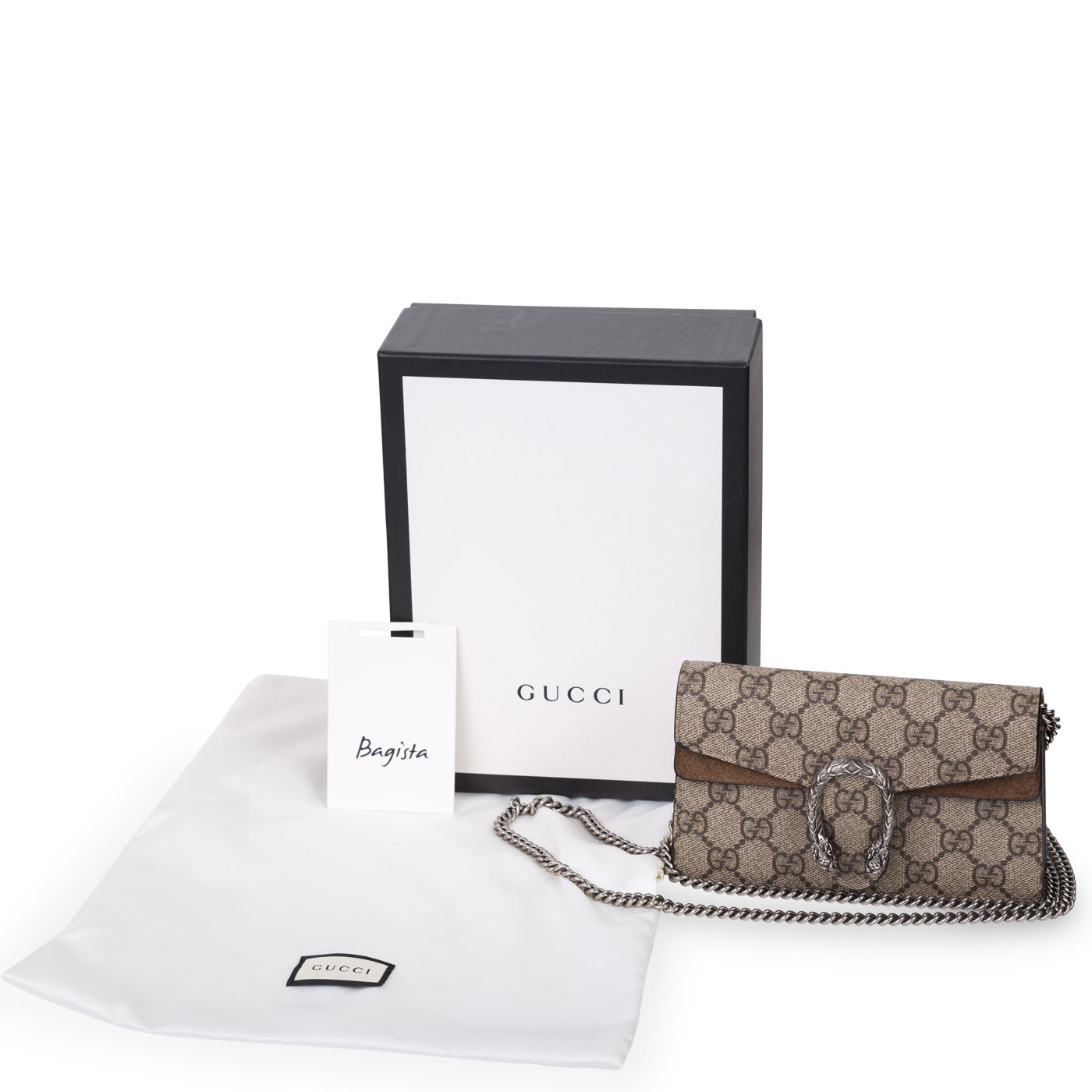 Inspired by the Greak God of wine and celebration, Dionysus. The Dionysus collection by Gucci are perfect bags to take out for special occasions. Decorated with the GG Supreme print and the unique tiger head spur closure – exclusive to the Dionysus collection. This mini bag comes with a key chain to attach any accessory or any bag. The shoulder chain has a drop of 60 cm, perfect for cross body and over the shoulder use. Style this bag with a Gucci T shirt and jeans for a casual look, or a dark shaded dress and heels for evening wear and partying.