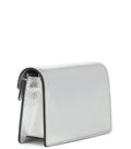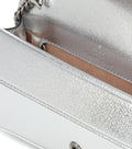 Gucci's famous Dionysus shoulder bag has been reimagined in Super Mini form. The structural silhouette is characterised by its engraved tiger head spur, which is crafted in Italy from grained silver leather. It may be carried as a clutch or carried by the removable chain shoulder strap, or it can be attached to a bigger purse using the inside key ring clip.