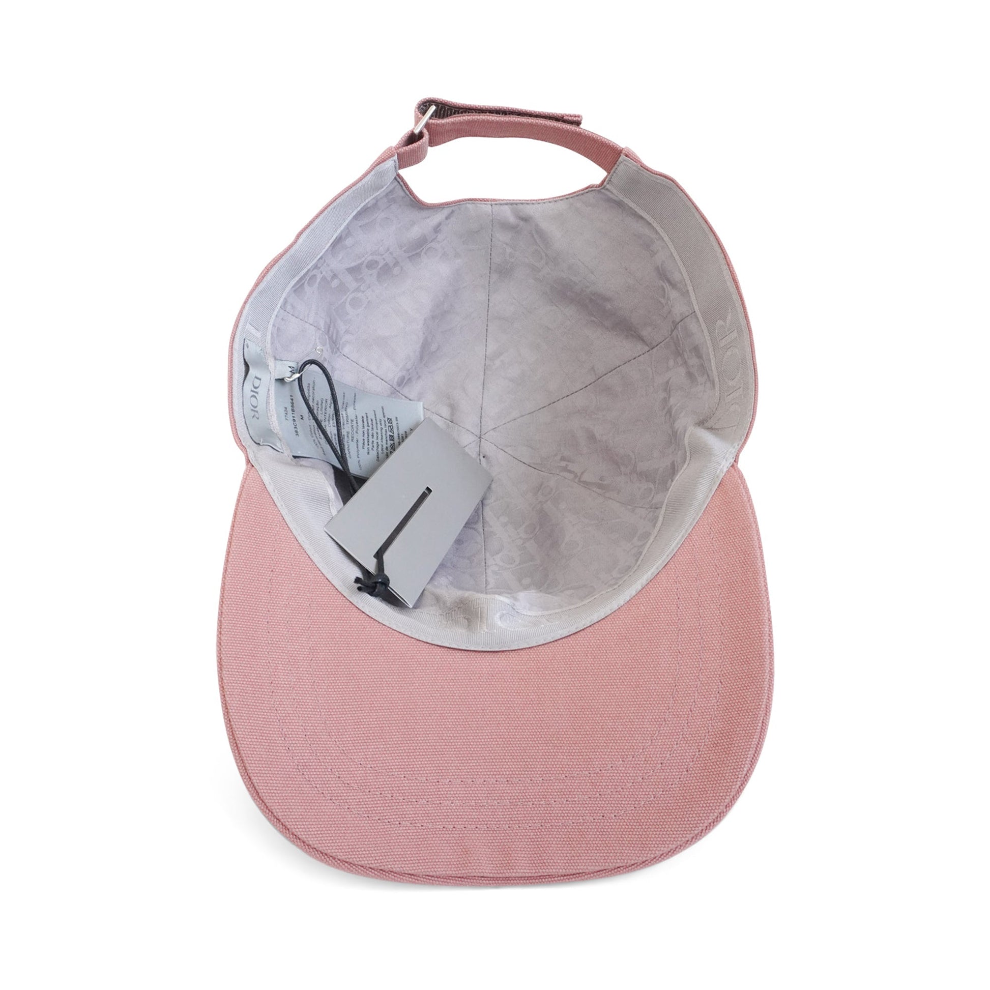 Dior baseball cap in dusty rose cotton with a small embroidered logo and an with adjustable strap with silver hardware.