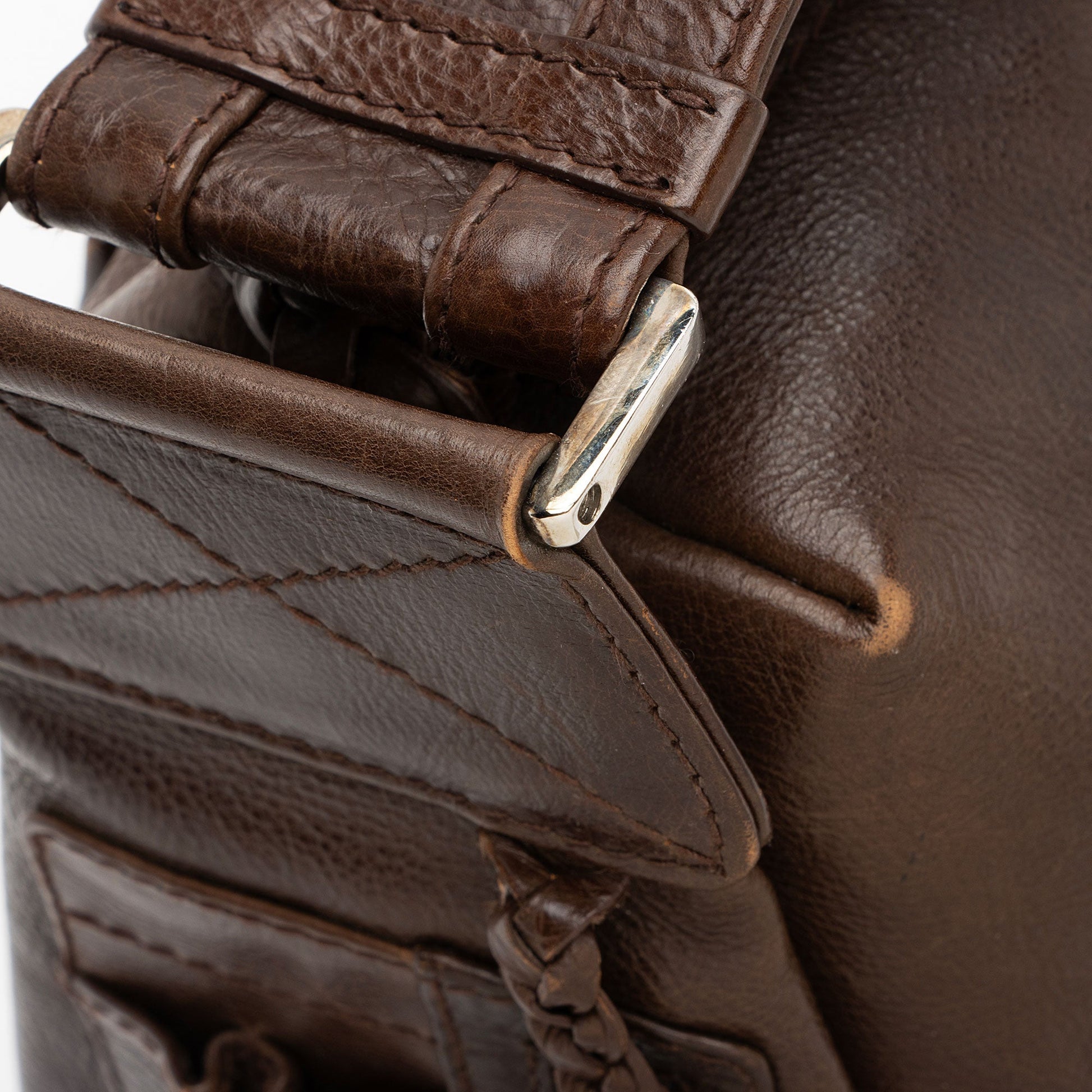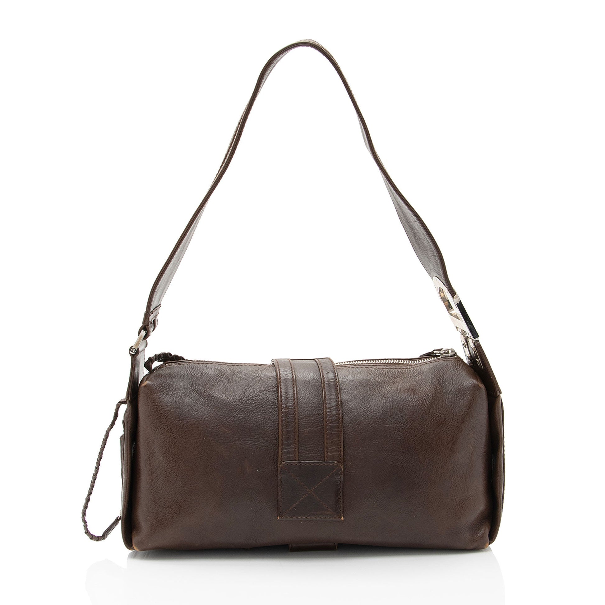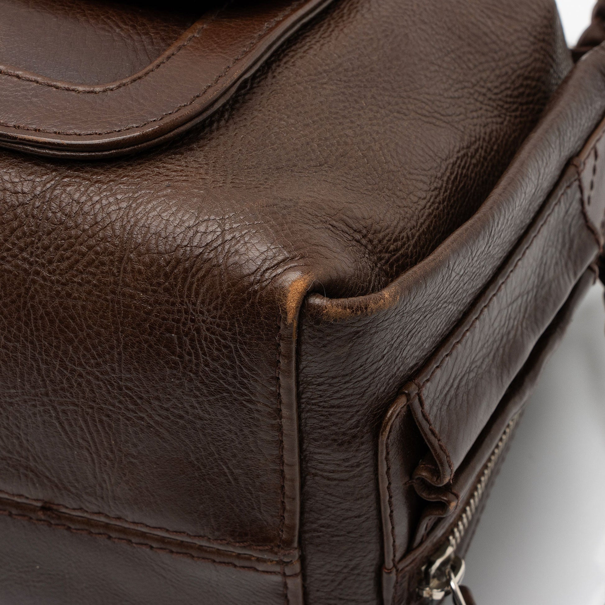 Condition Notes: Light creasing and scuffs throughout exterior and shoulder strap. Light scuffs to exterior bottom corners. Surface scratches to hardware. Minor marks and wear throughout interior.