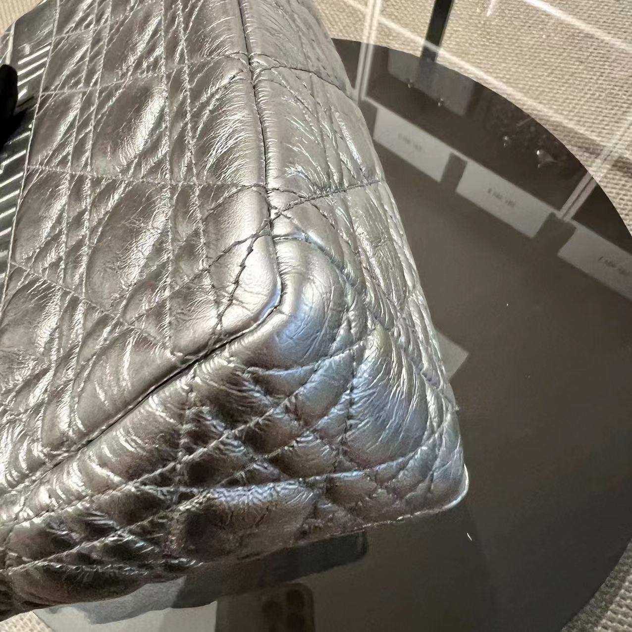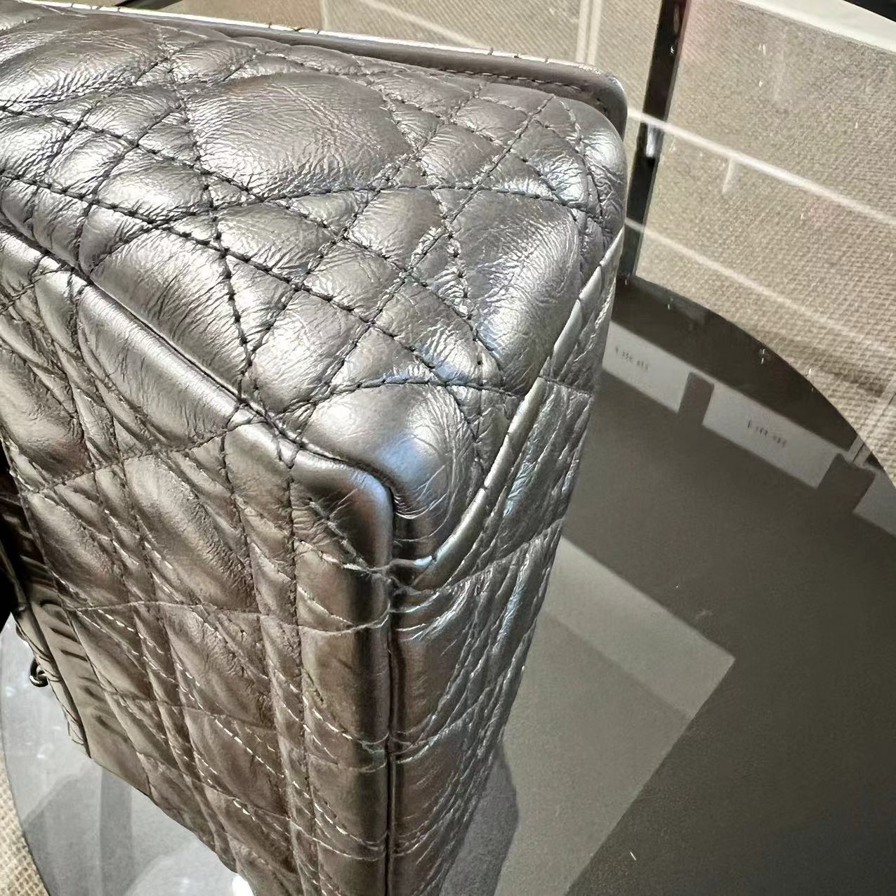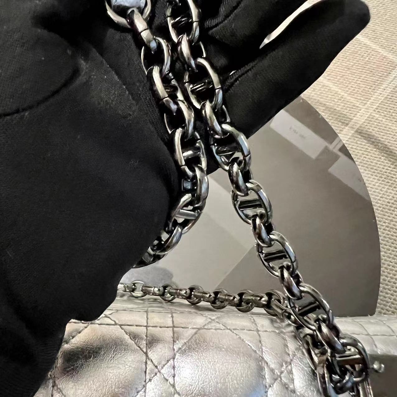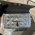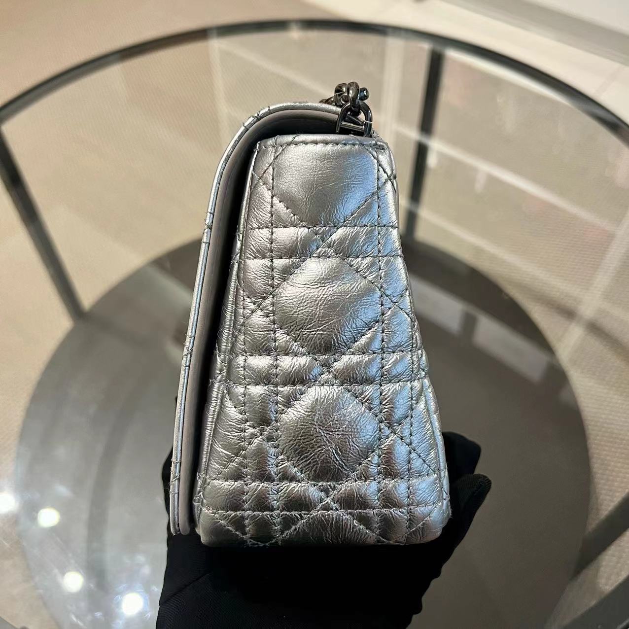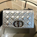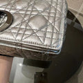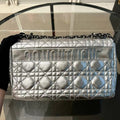 Caro Medium Calfskin Cannage Silver Metallic Shoulder Bag Silver Hardware