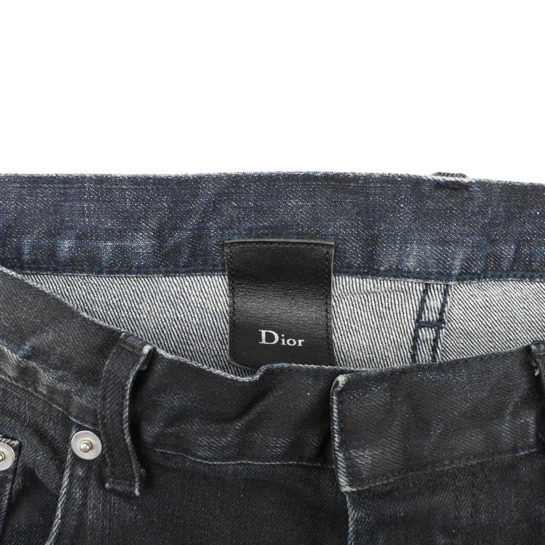 Christian Dior straight-leg jeans in dark blue denim with button fly closure and silver detailing.