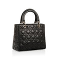 Dior presents one of its most reputable handbags and possibly one of the most sought-after handbags in the world, the Lady Dior in black calfskin. Its magnificent carnage stitching is said to be inspired by the Napoleon III rattan.The bag’s tone to tone stitching serves to reinforce the bag’s sophisticated tone, alongside its removable chain. The D.I.O.R charm letters, with their distinctive larger O, which hang from the handle are galvanised to maintain the bag’s femininity. The handbag also comes accompanied with a black and white twilly, which only serves to intensify the bag’s chic tone.