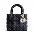 *No Strap* Dior Lady Flap Medium - Grained Calfskin Cannage Flap Open Black Gold Hardware