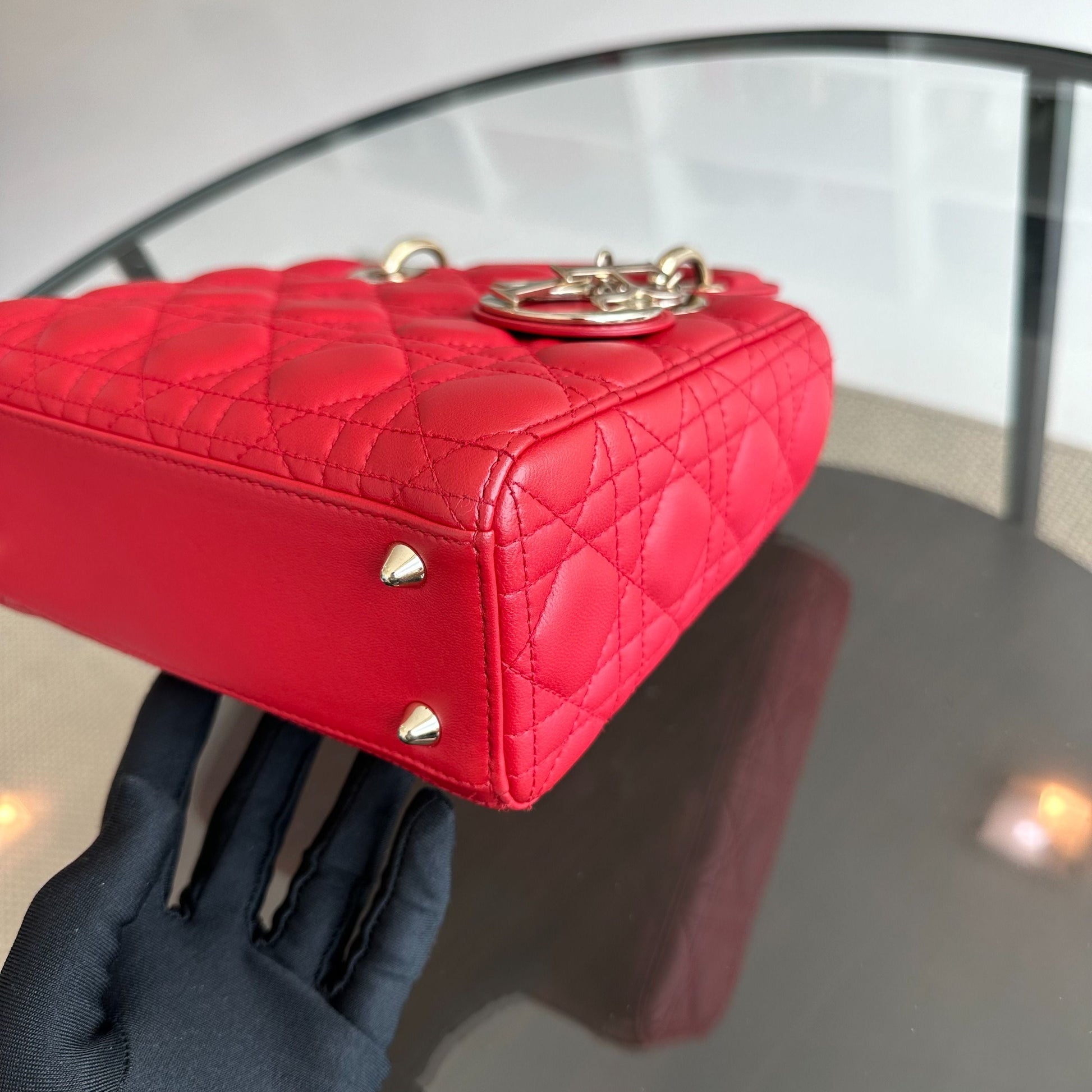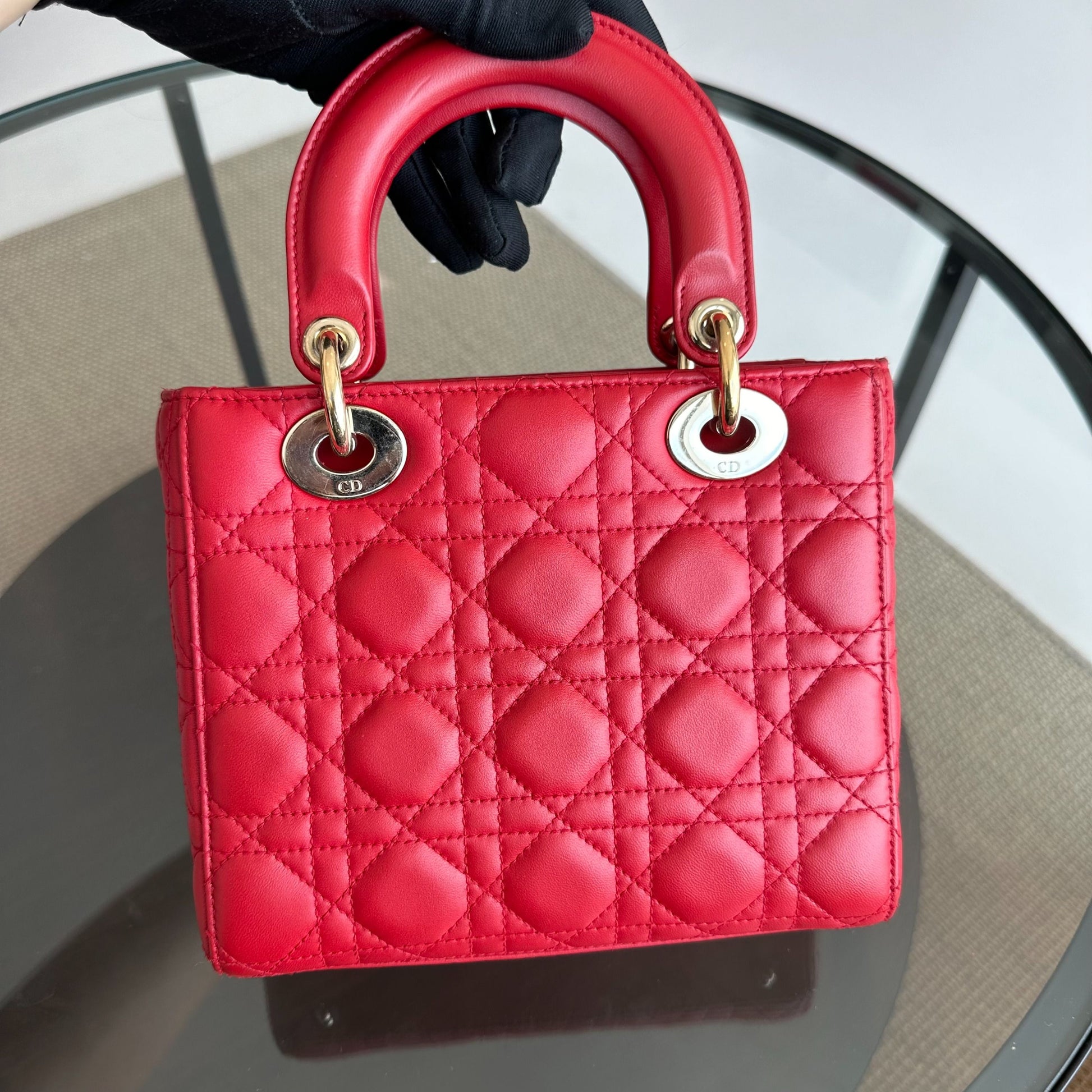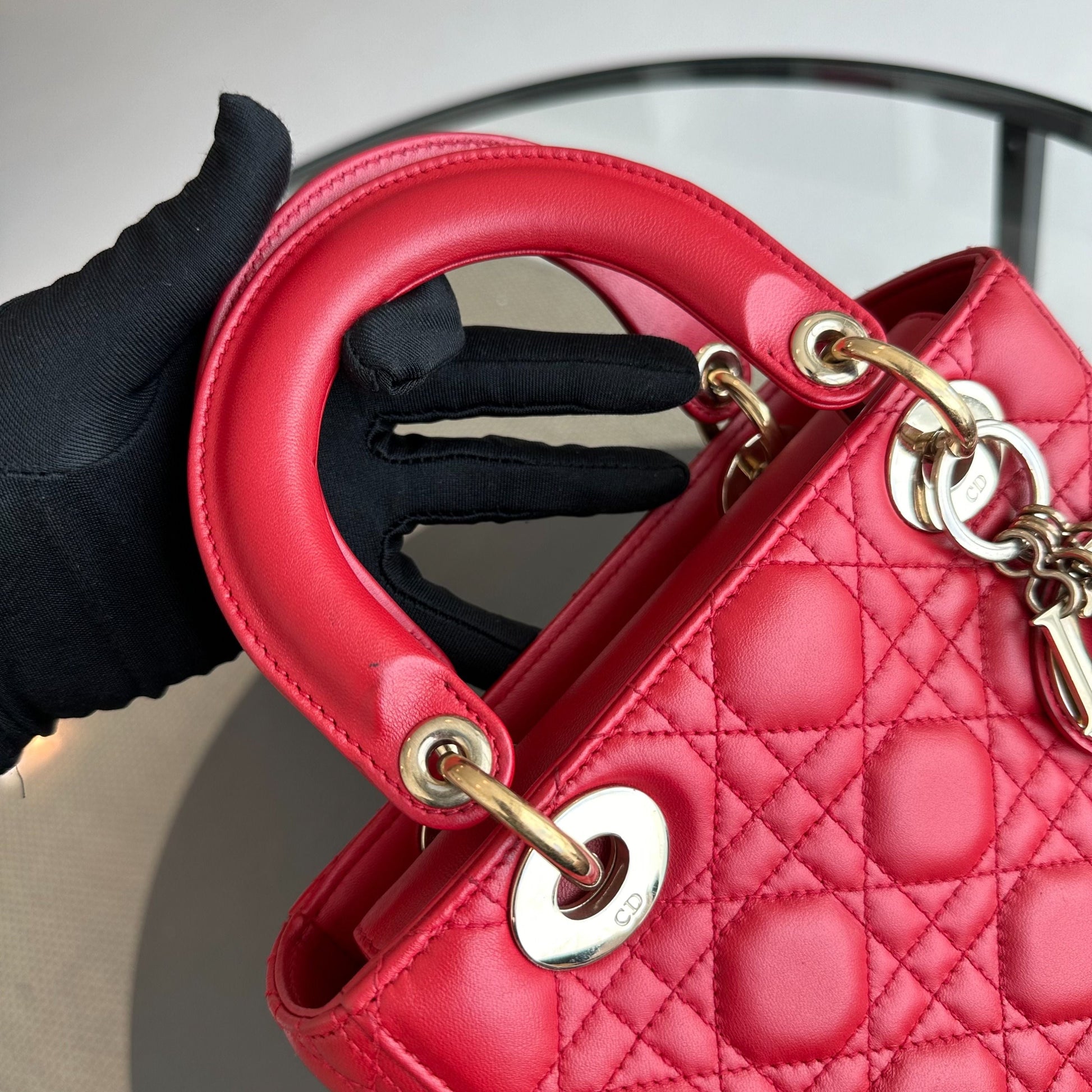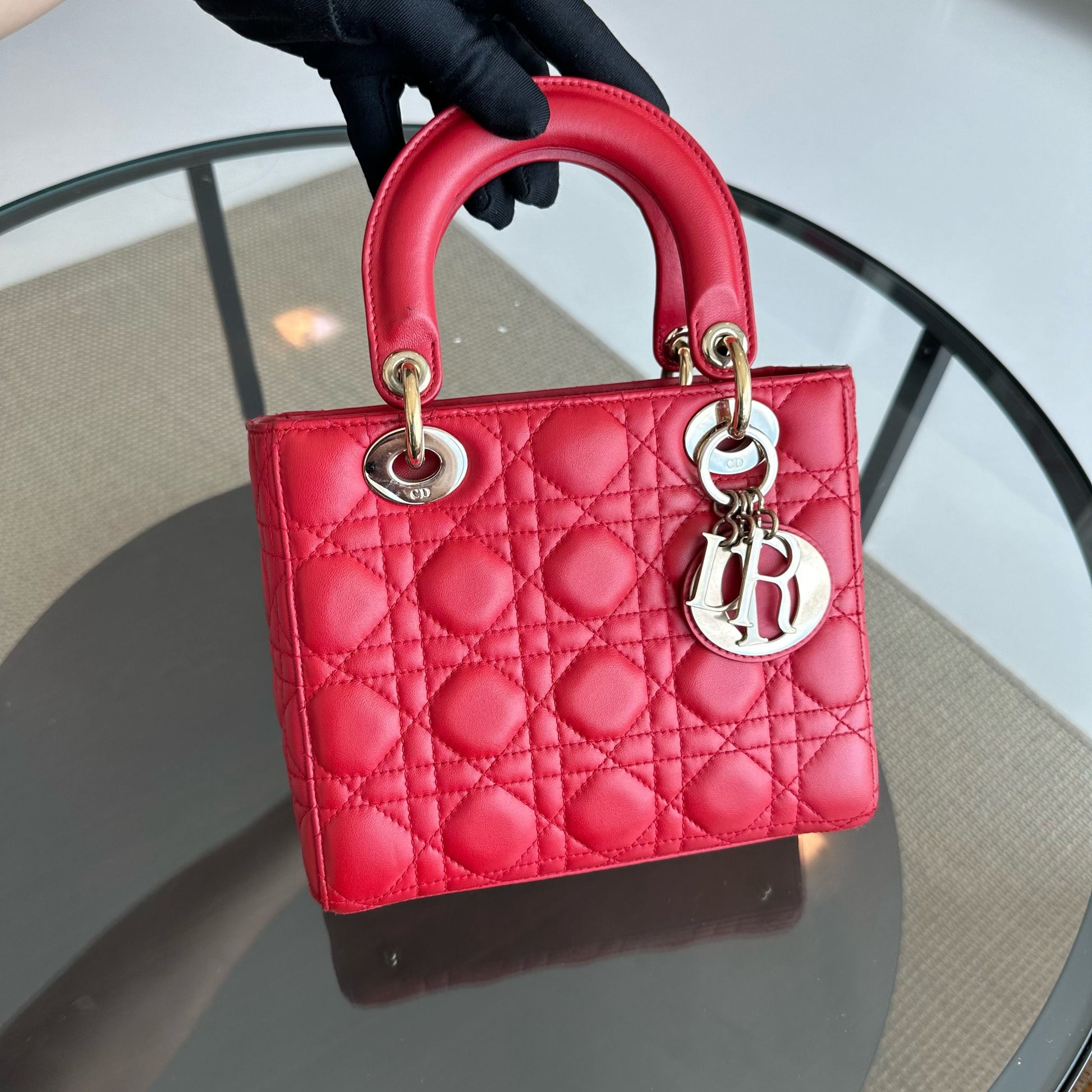 Lady Small Lambskin Red Badge Charm ABC MyABC Shoulder Bag