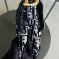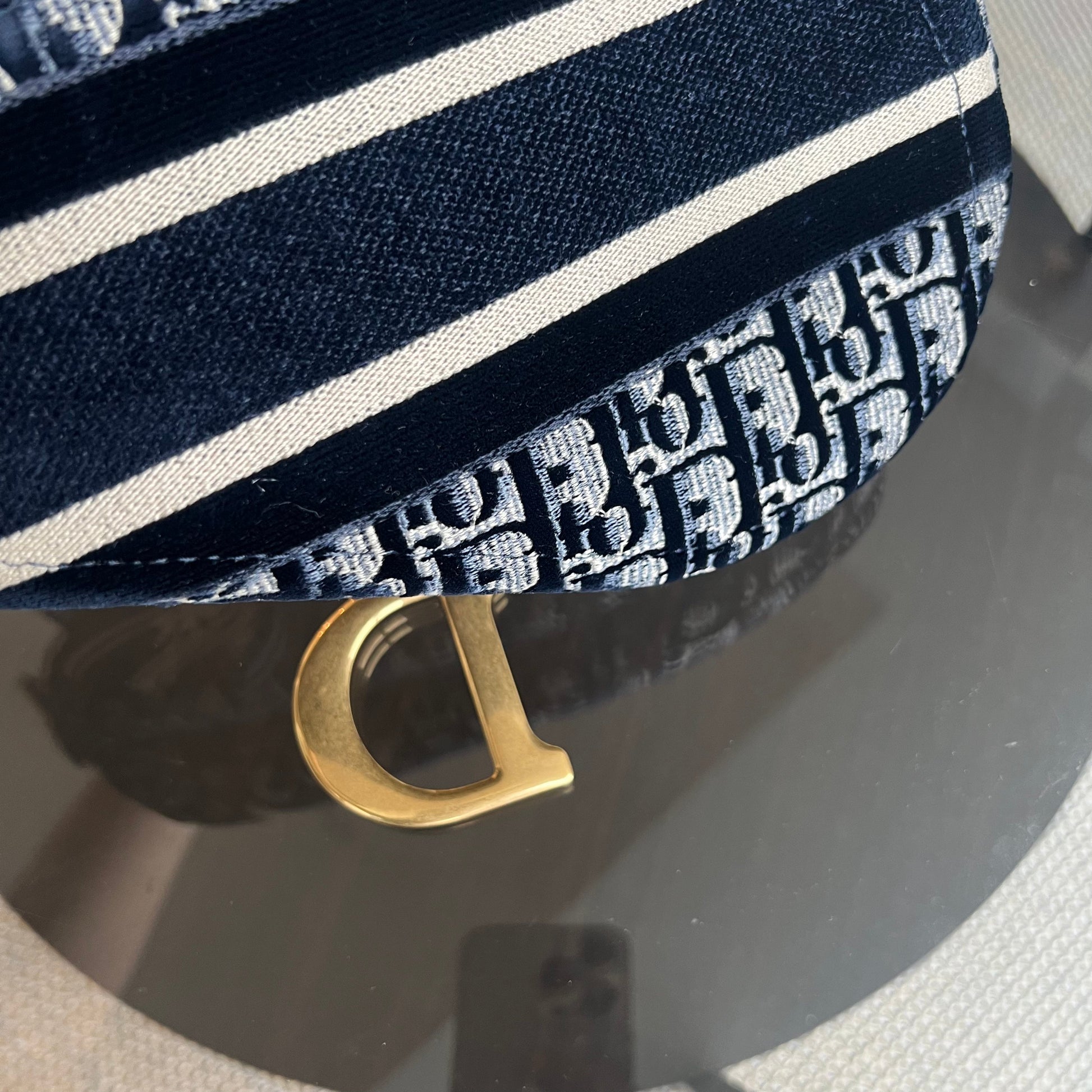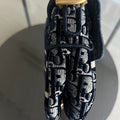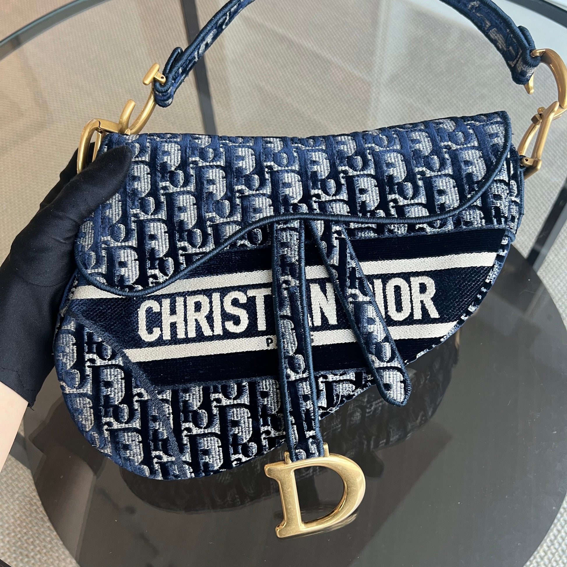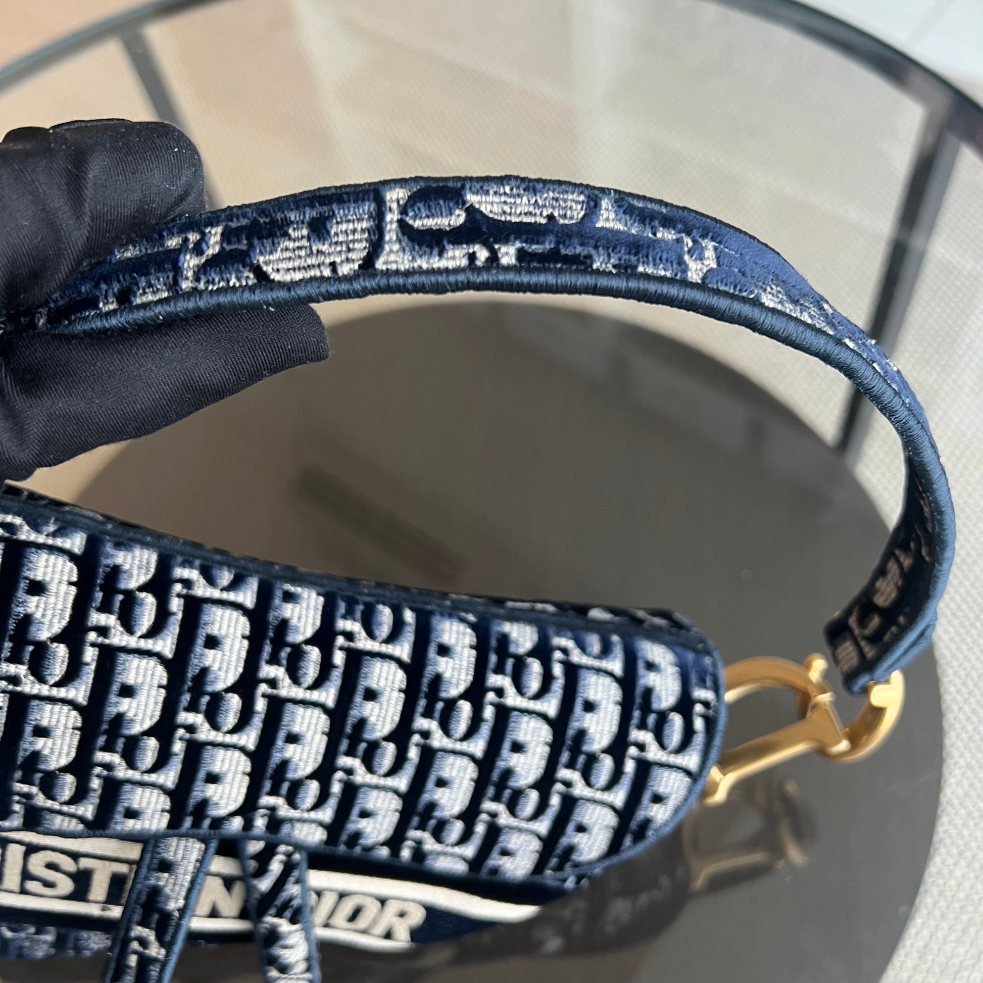 Medium Saddle Oblique Canvas Dark Blue Golden Hardware