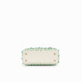Elevate your elegance with the iconic Lady Dior Mini Bag, a true symbol of refined craftsmanship and timeless sophistication. This exquisite edition features a glossy white patent leather base, intricately adorned with mint green and clear crystal embellishments that create a sparkling gradient effect from bottom to top.