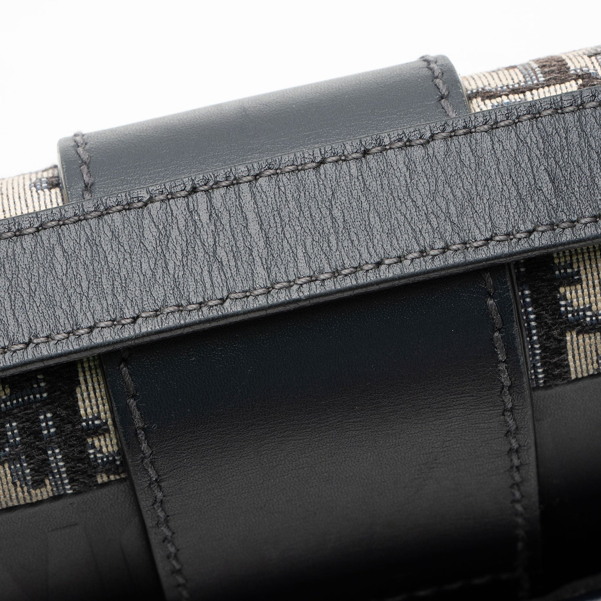 Condition Notes: Visible scuffs to exterior corners. Scuffs and wear throughout exterior leather trim. Light creasing and wear throughout shoulder strap. Light marks and discoloration throughout exterior canvas. Heavy surface scratches and visible tarnishing to hardware. Fading and wear throughout interior.