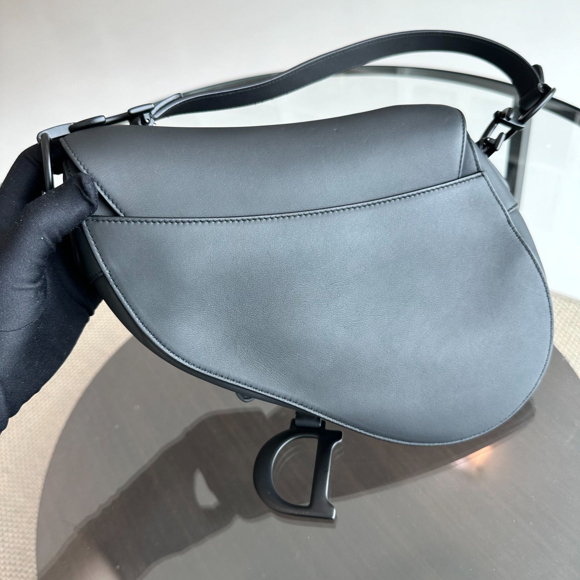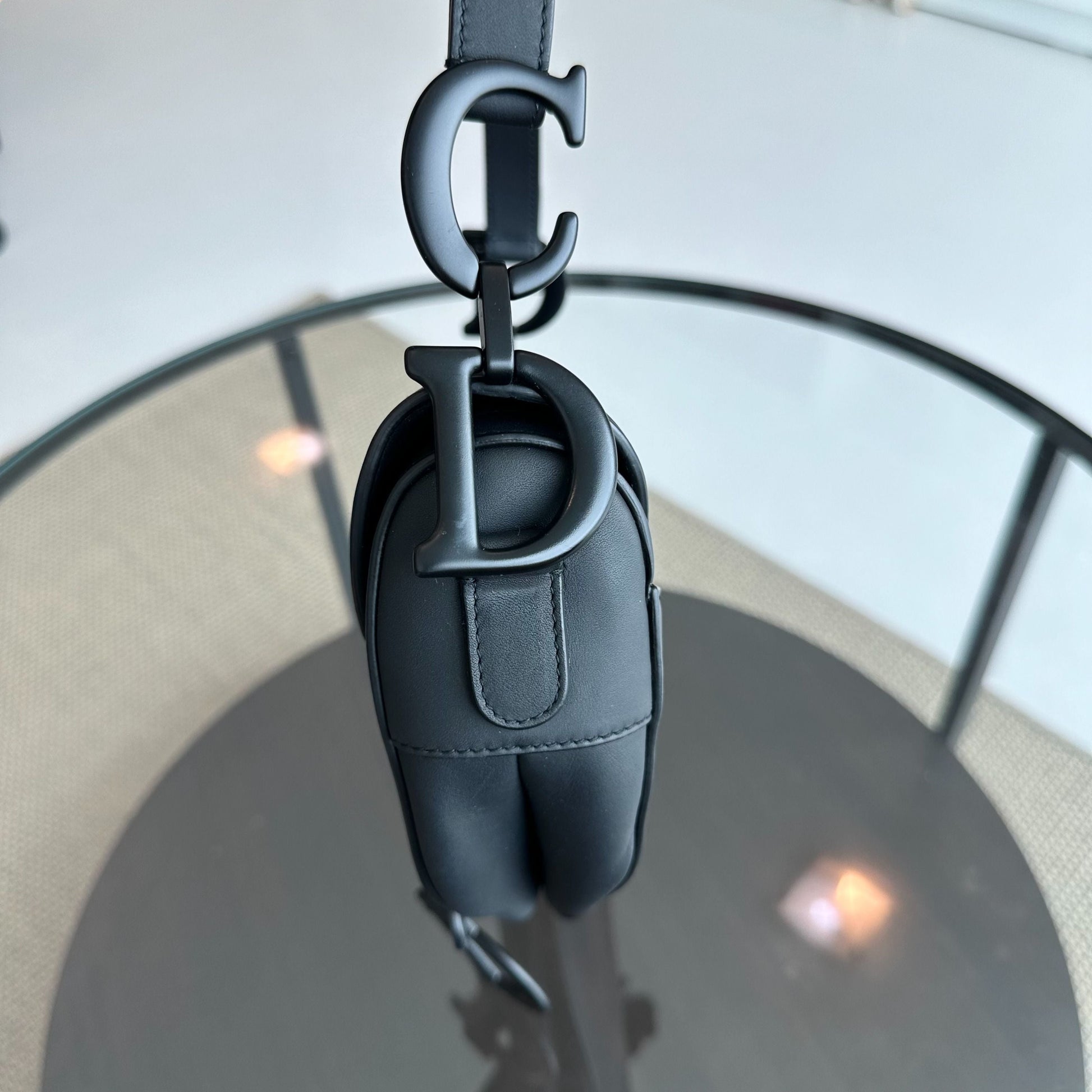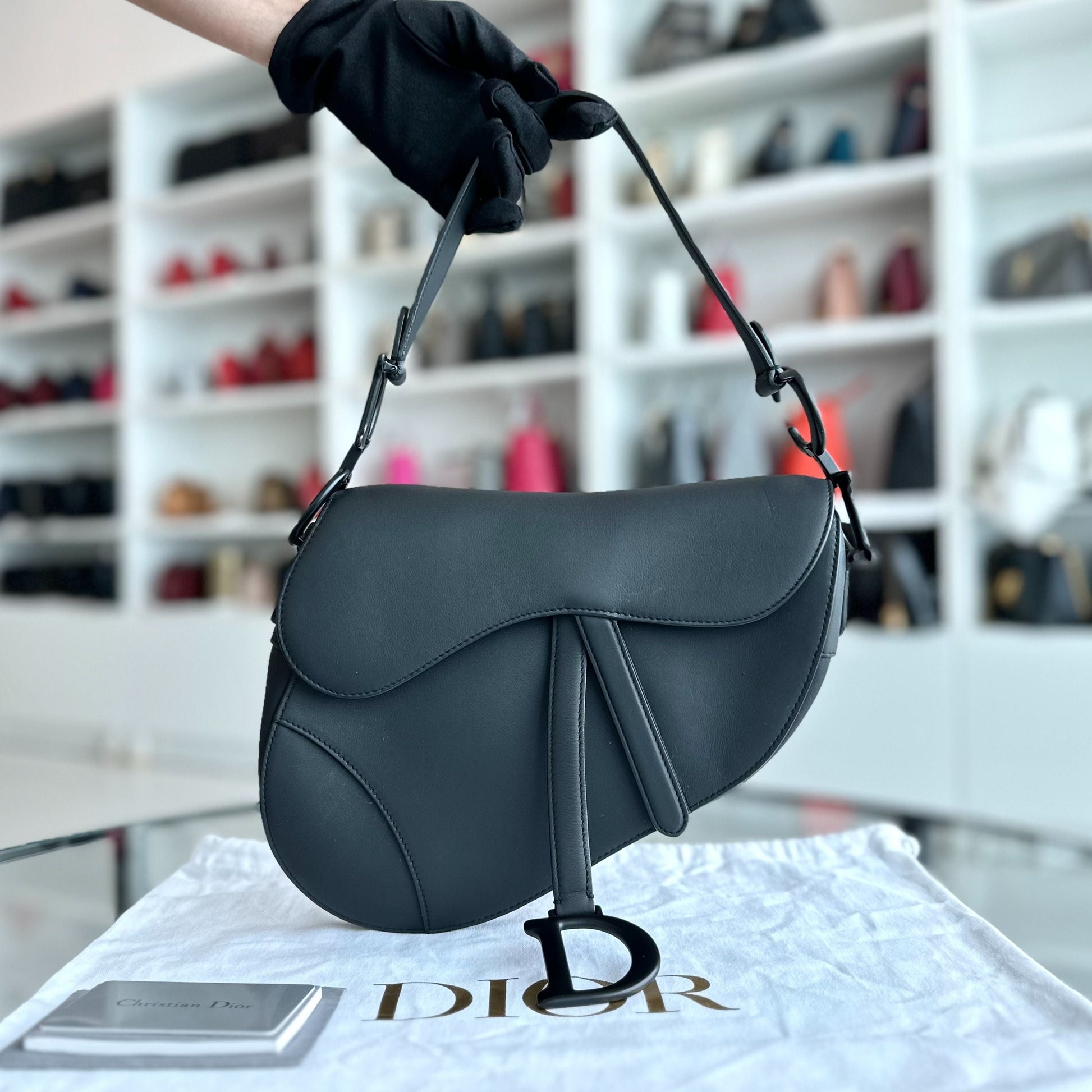 Saddle Medium All Black Classic Lambskin BHW