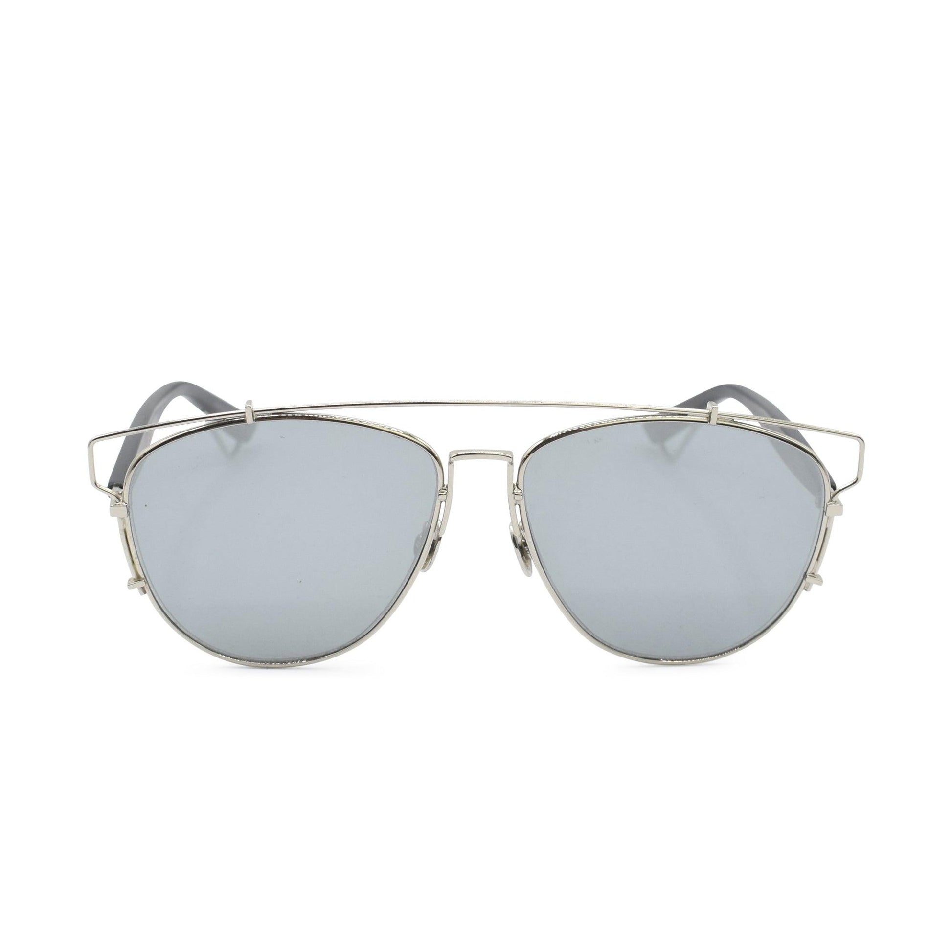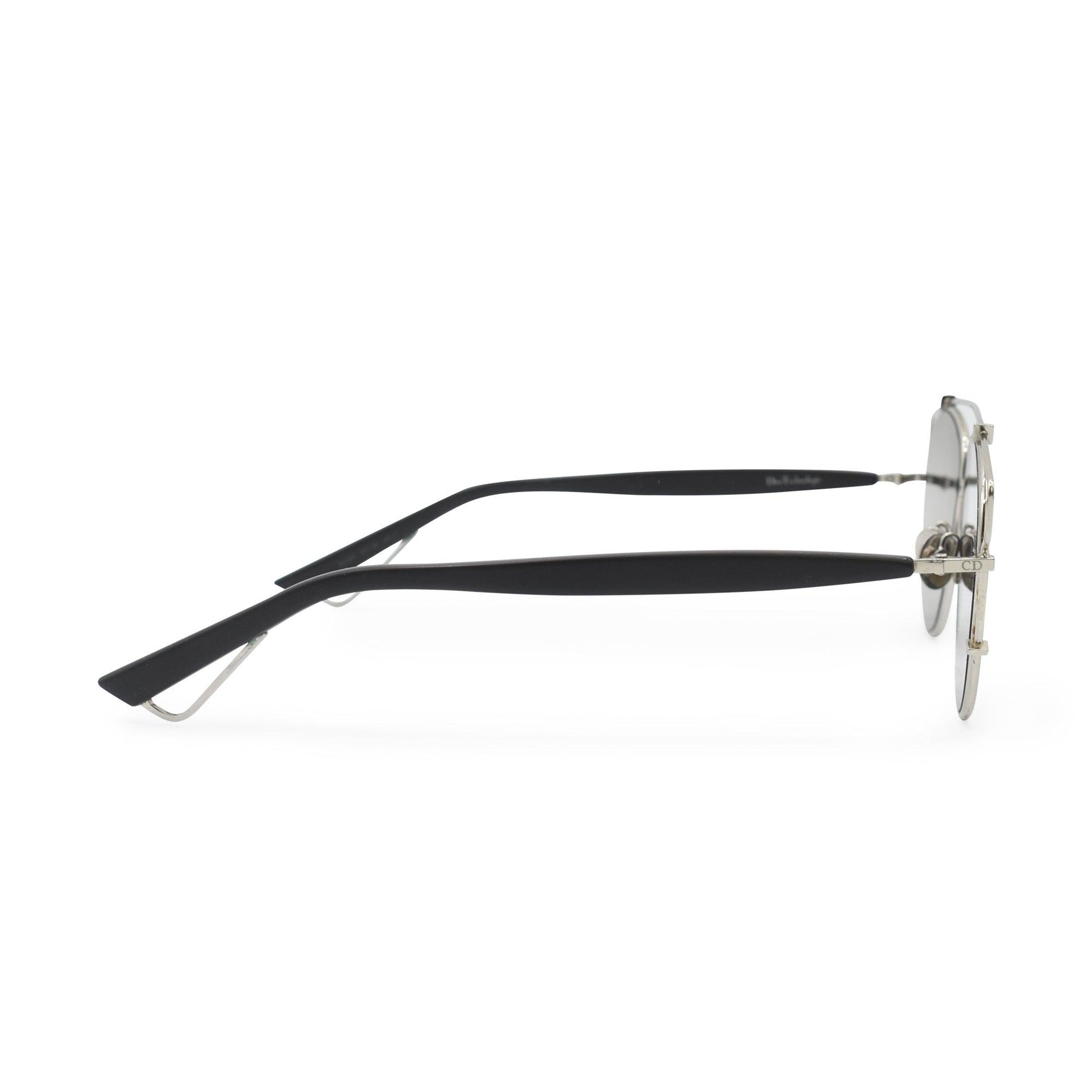 Christian Dior 'Technologic' Sunglasses with a flat aviator mirror lens in silver hardware and matte black arm detail. Includes box.