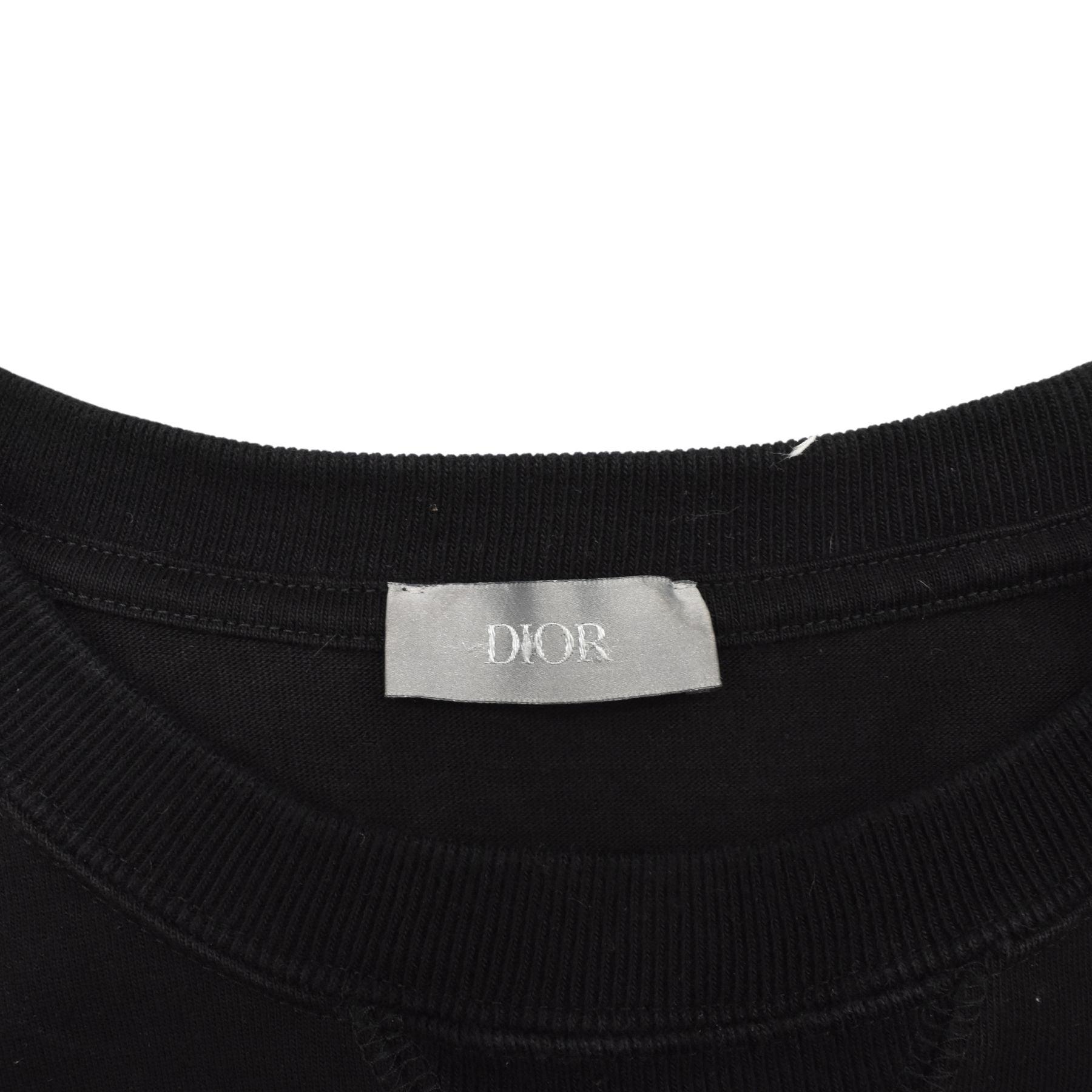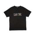 Dior t-shirt in black cotton with an embroidered multicolour floral logo across the chest. From the 2021 Dior Flowers collection.