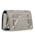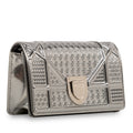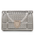 The definition of a statement piece, this Baby Diorama is an absolute showstopper. Crafted from silver-tone metallic calfskin with an micro-cannage motif, it's difficult for heads not to turn when seeing this perfect mini bag pass down the street. The Diorama has become a timeless piece from Dior's accessories line and is sure to never go out of style. The ideal compliment to any night-outfit you may have in your wardrobe. For the woman who wants to add a little bit of drama to her life by carrying some shimmer with her wherever she goes, this Diorama is a well worthy addition to any luxury handbag collection. A trust must have for any lover of timeless pieces and a special spot for Dior.