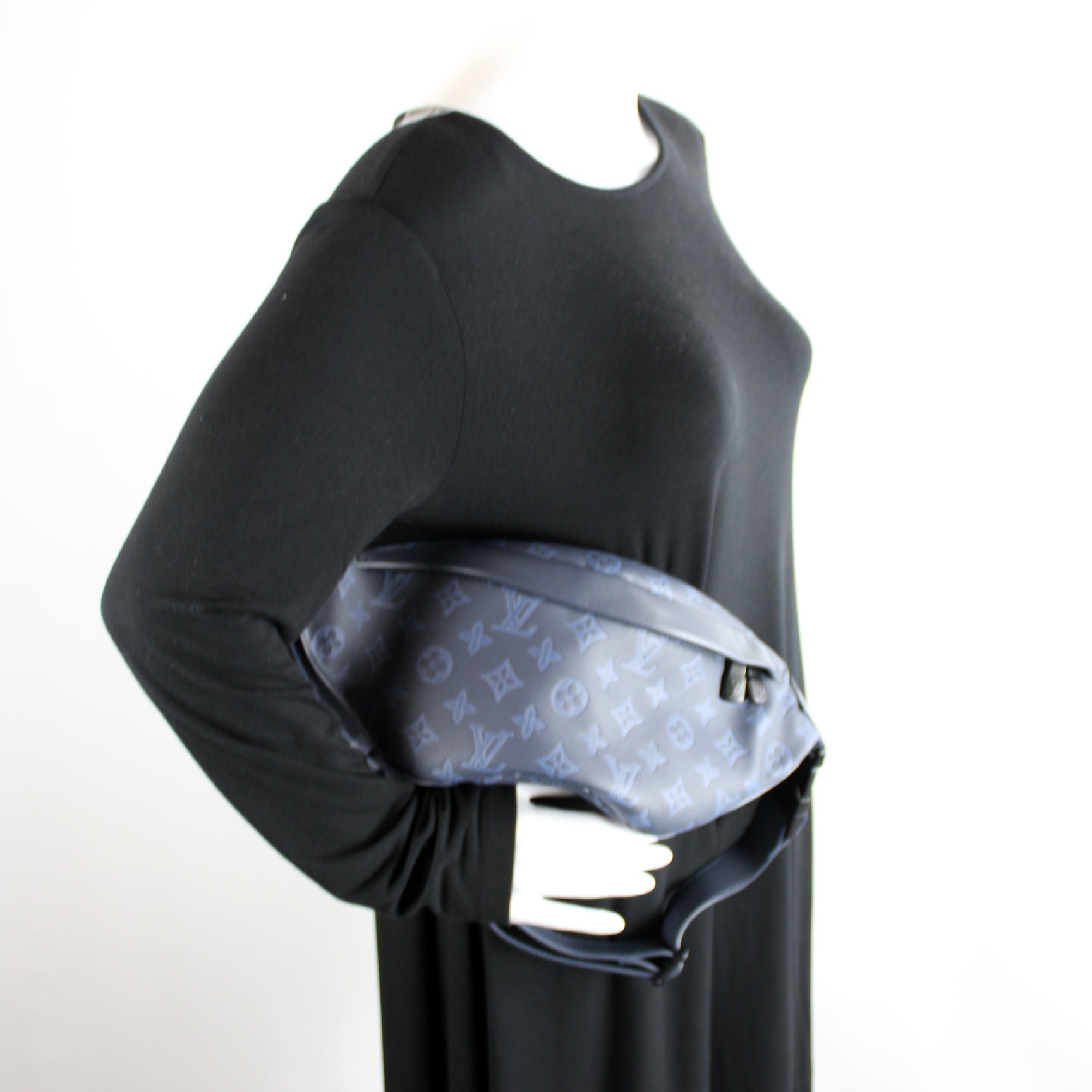 This Louis Vuitton Bumbag Discovery Galaxyis eye catching bag. The exterior is in the classic Louis Vuitton Monogram Eclipse coated canvas.