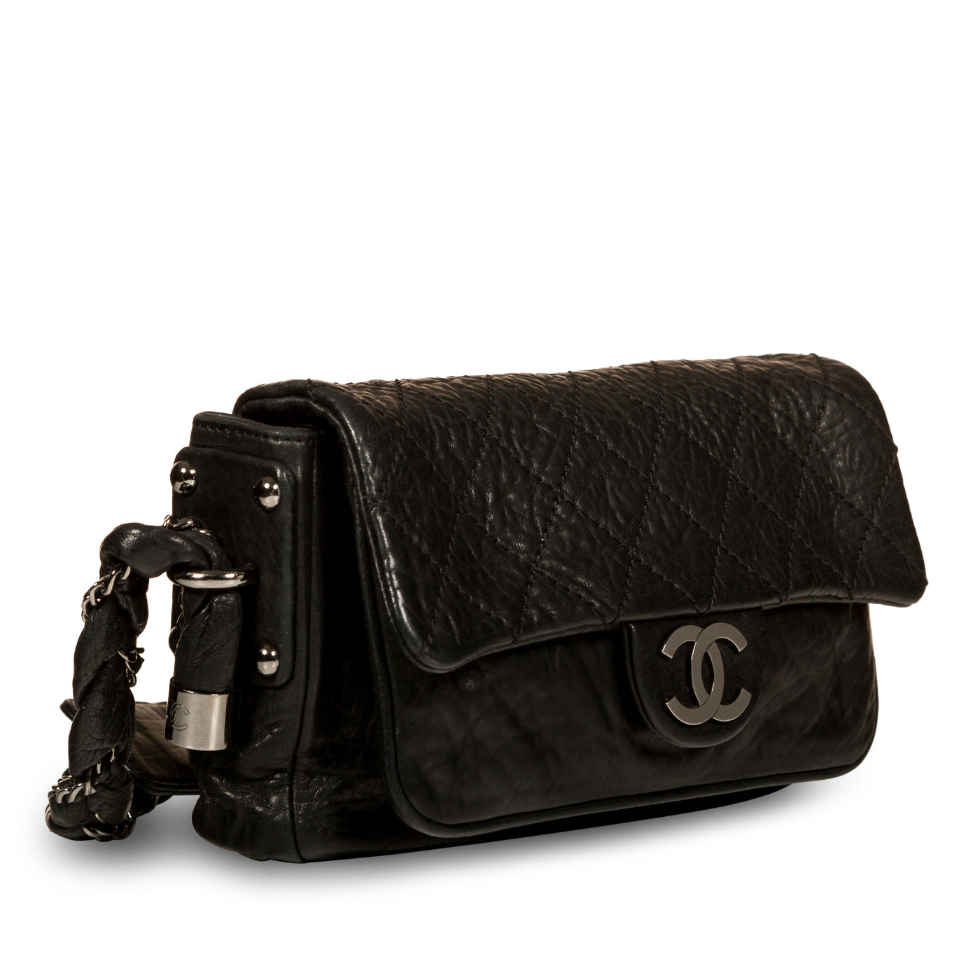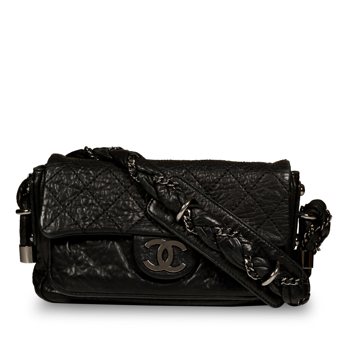 Yes ladies, long baguette bags are back and they're better than ever. A prime example of how fashion is constantly recycling trends from decades past, this black Chanel shoulder bag represents the early 2000s eras in the best way possible. We know you may be shuddering just thinking about dresses over low waisted flares, flip flops and thin glitter scarves - but you have to admit, the bags were pretty iconic. Crafted from distressed calfskin, this black bag features Chanel's iconic quilted design and interwoven chain / leather straps with a large leather shoulder pad. Complimented by dark silver-tone hardware, the bag offers a spacious interior that can easily hold all your essentials comfortably inside. A huge throwback piece that seemingly remains in style today, this timeless piece is worth investing in.