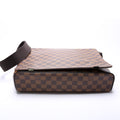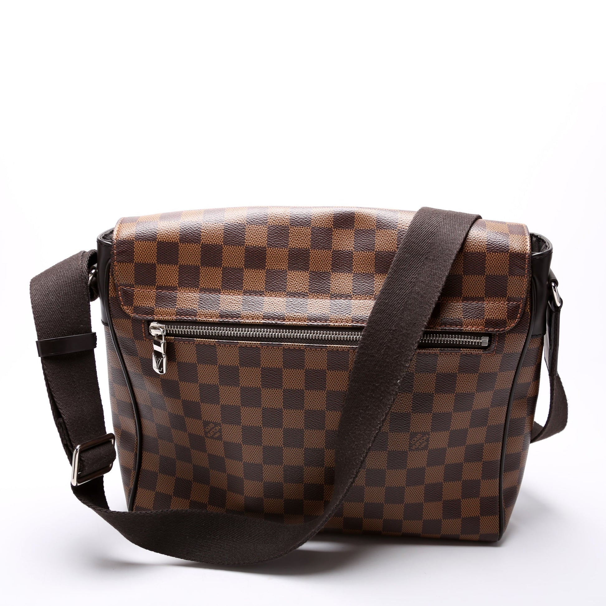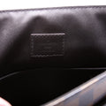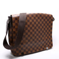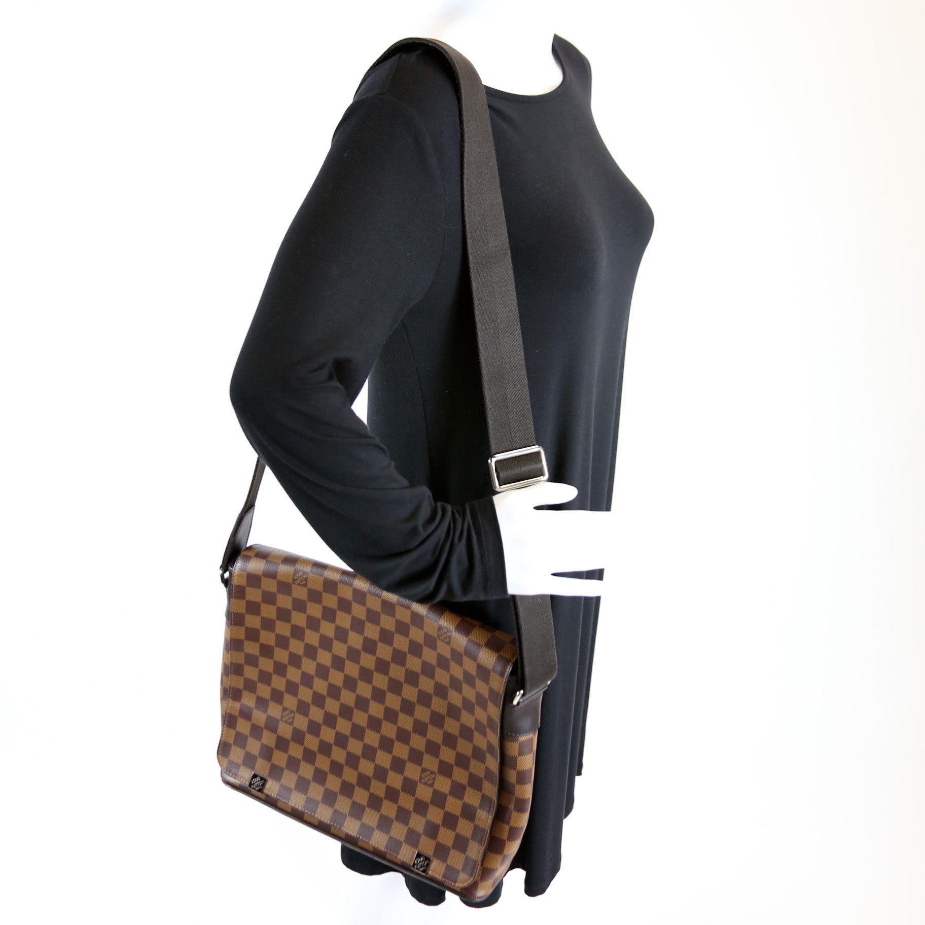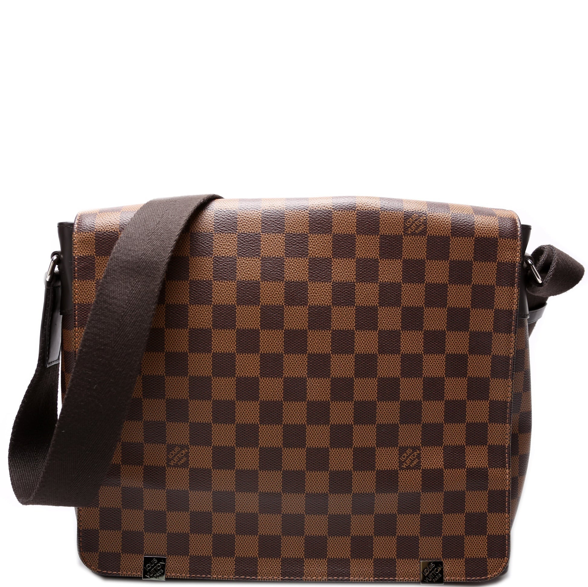 This Louis Vuitton District MMis eye catching bag. The exterior is in the classic Louis Vuitton Damier Graphite coated canvas.