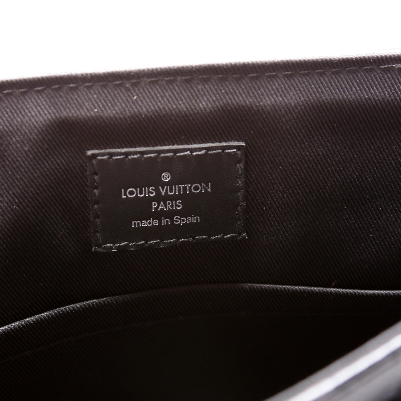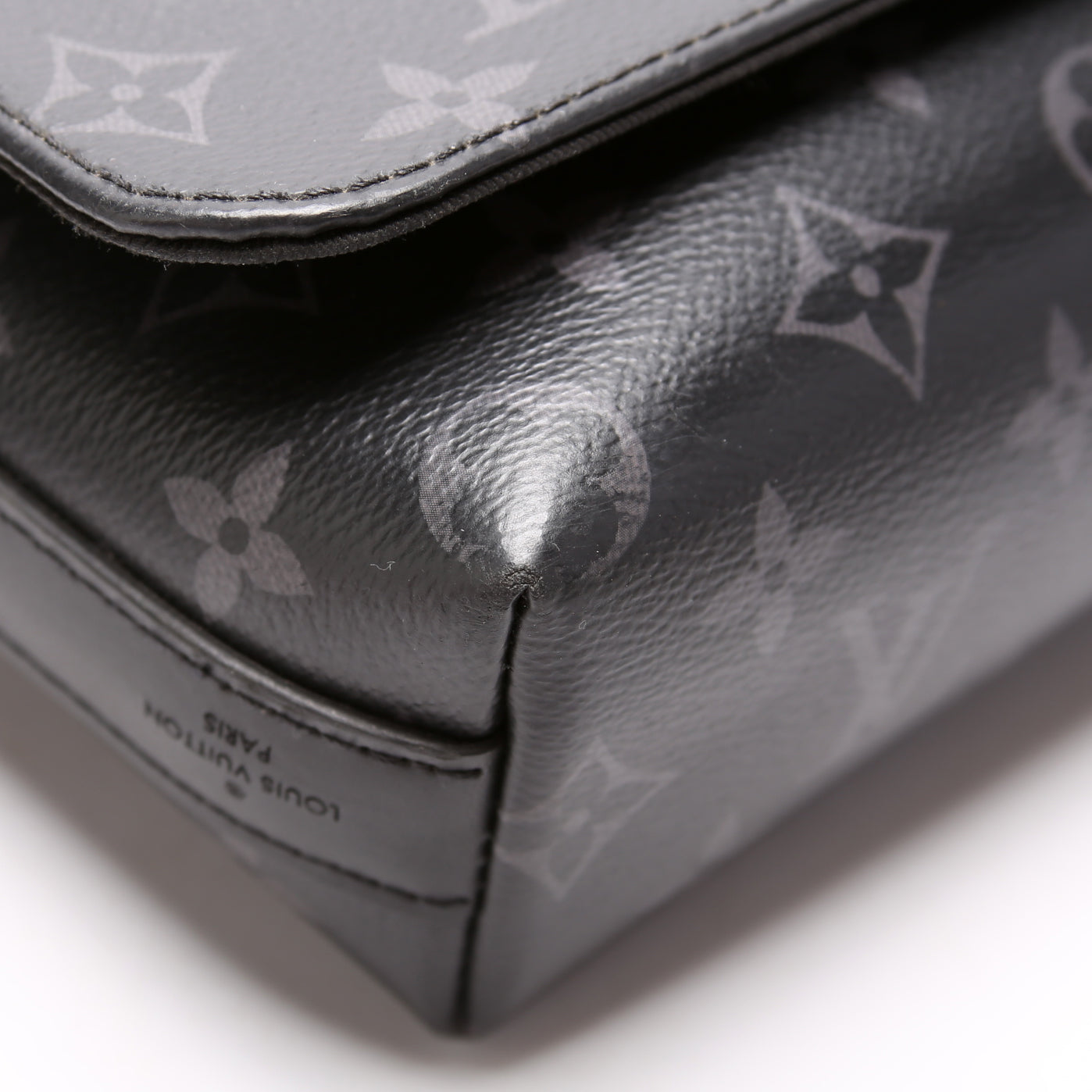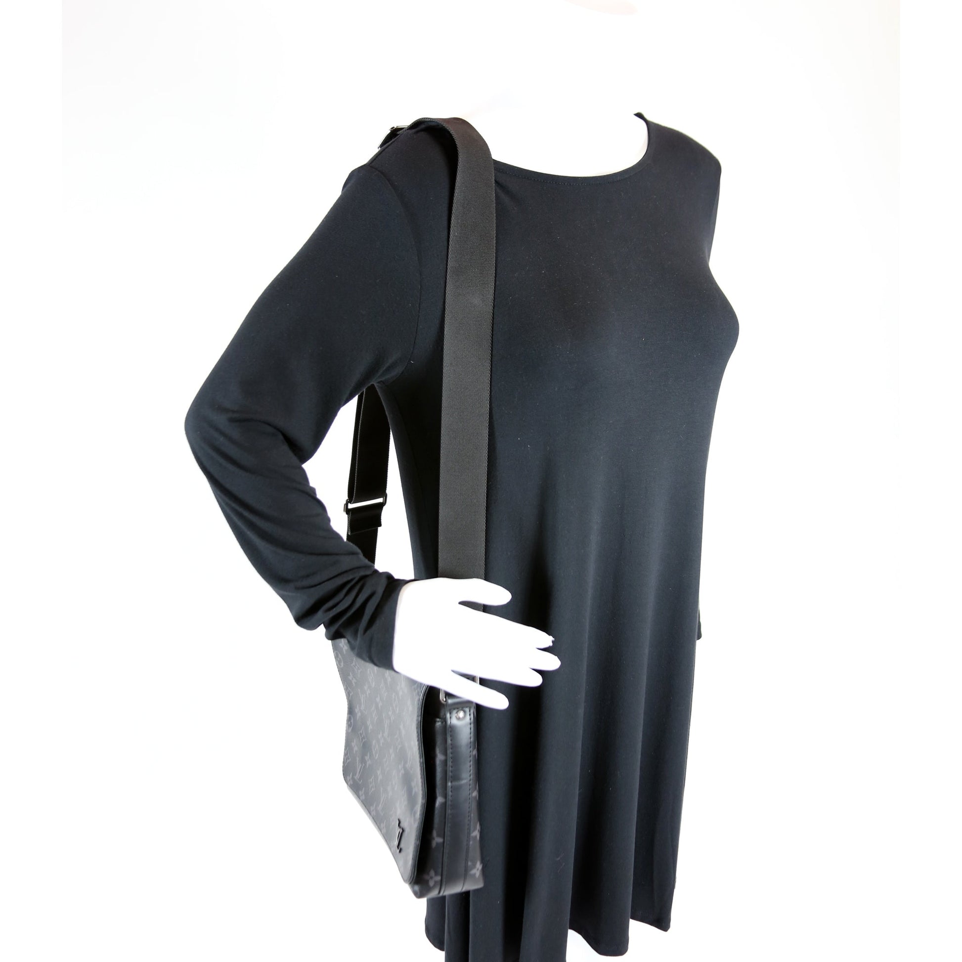 This Louis Vuitton District PMis eye catching bag. The exterior is in the classic Louis Vuitton Monogram Eclipse coated canvas.