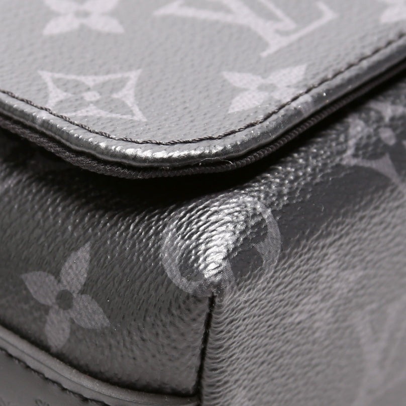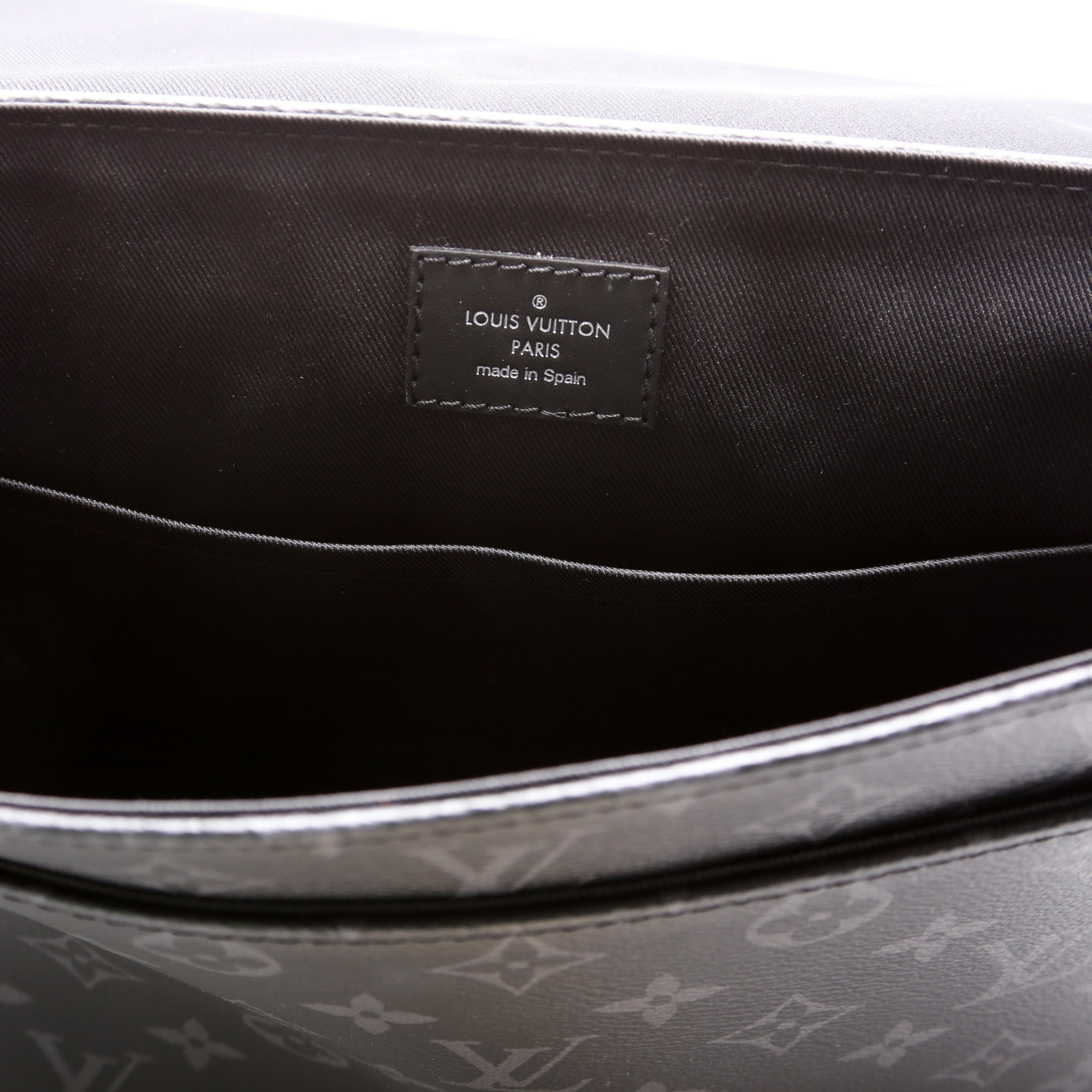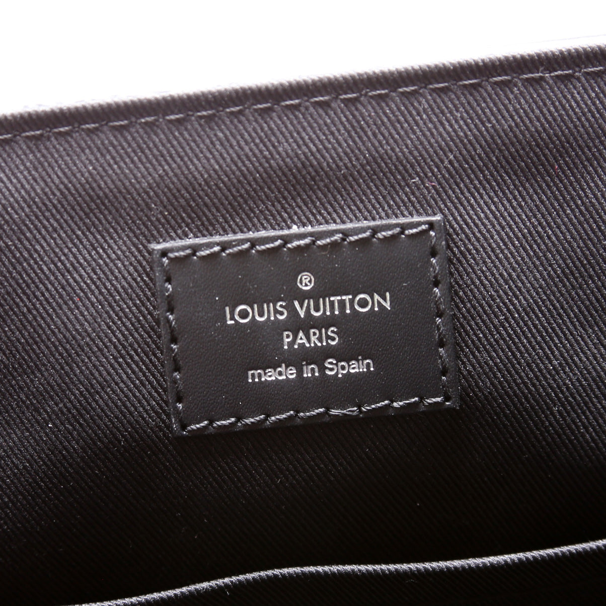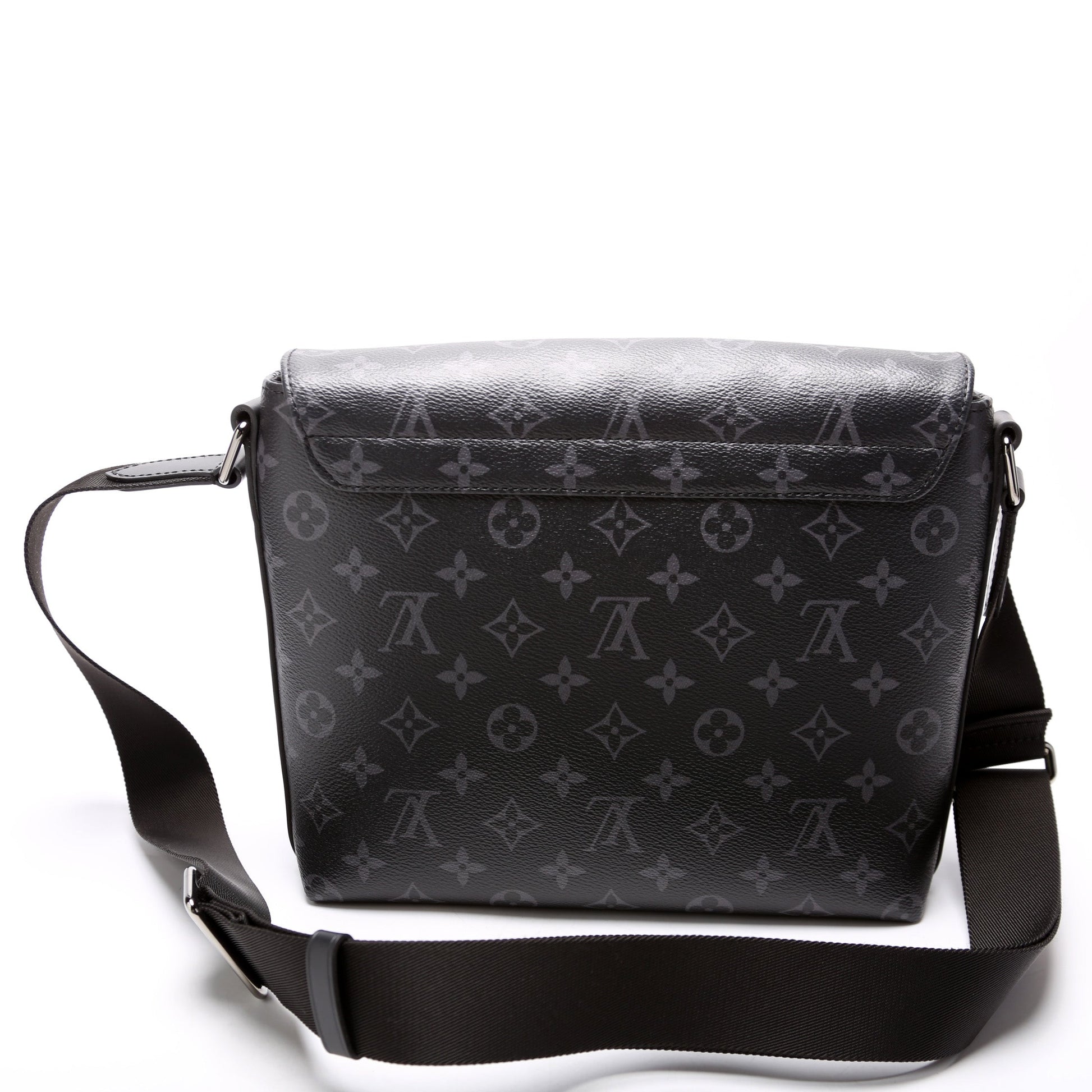 This Louis Vuitton District PMis eye catching bag. The exterior is in the classic Louis Vuitton Monogram Eclipse coated canvas.