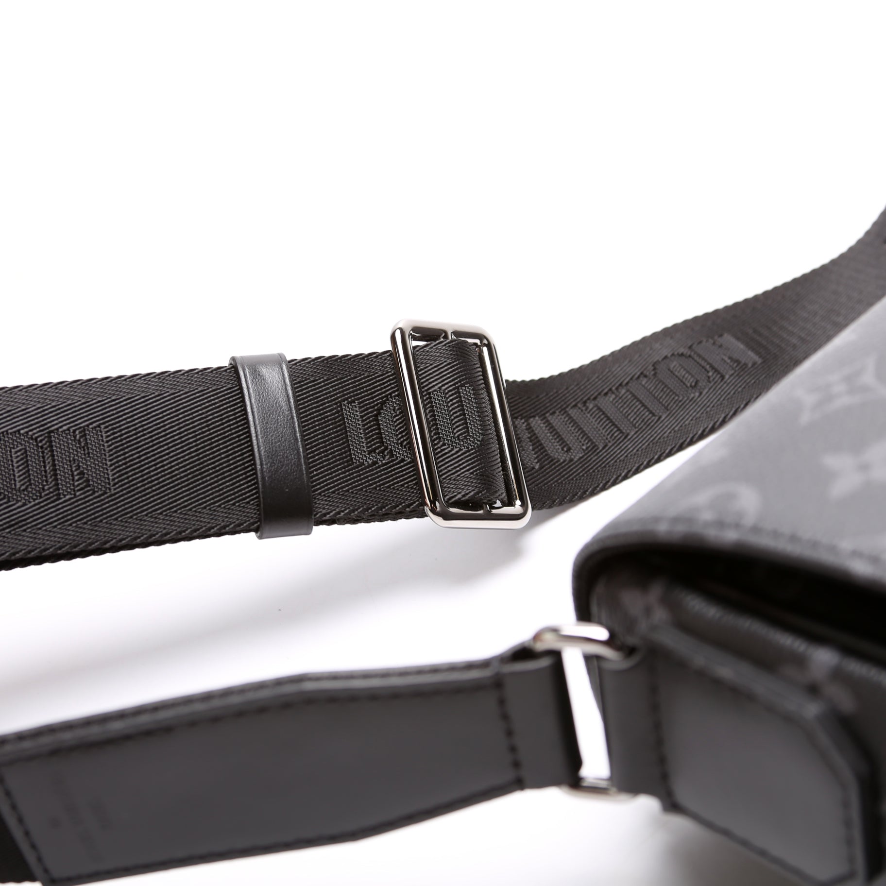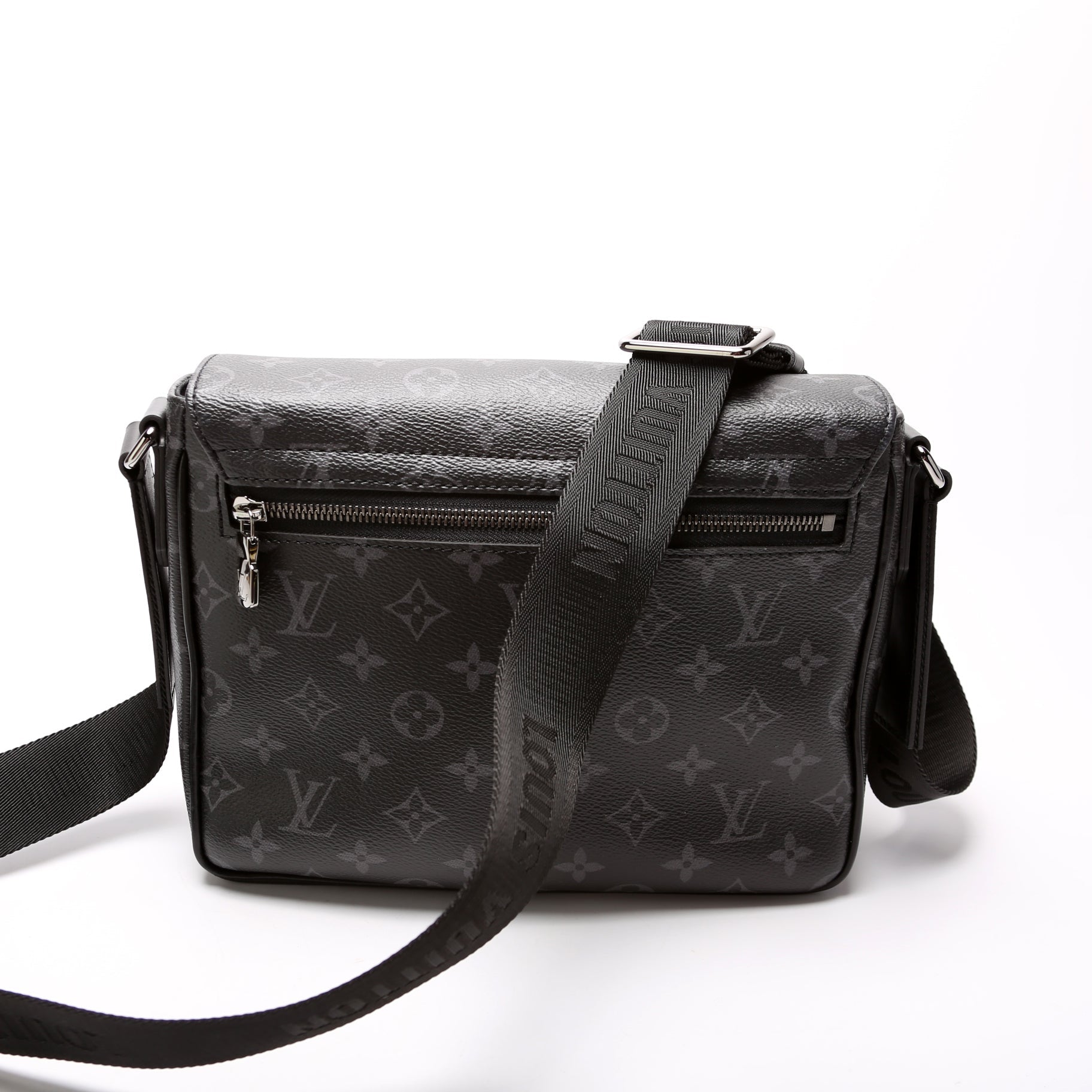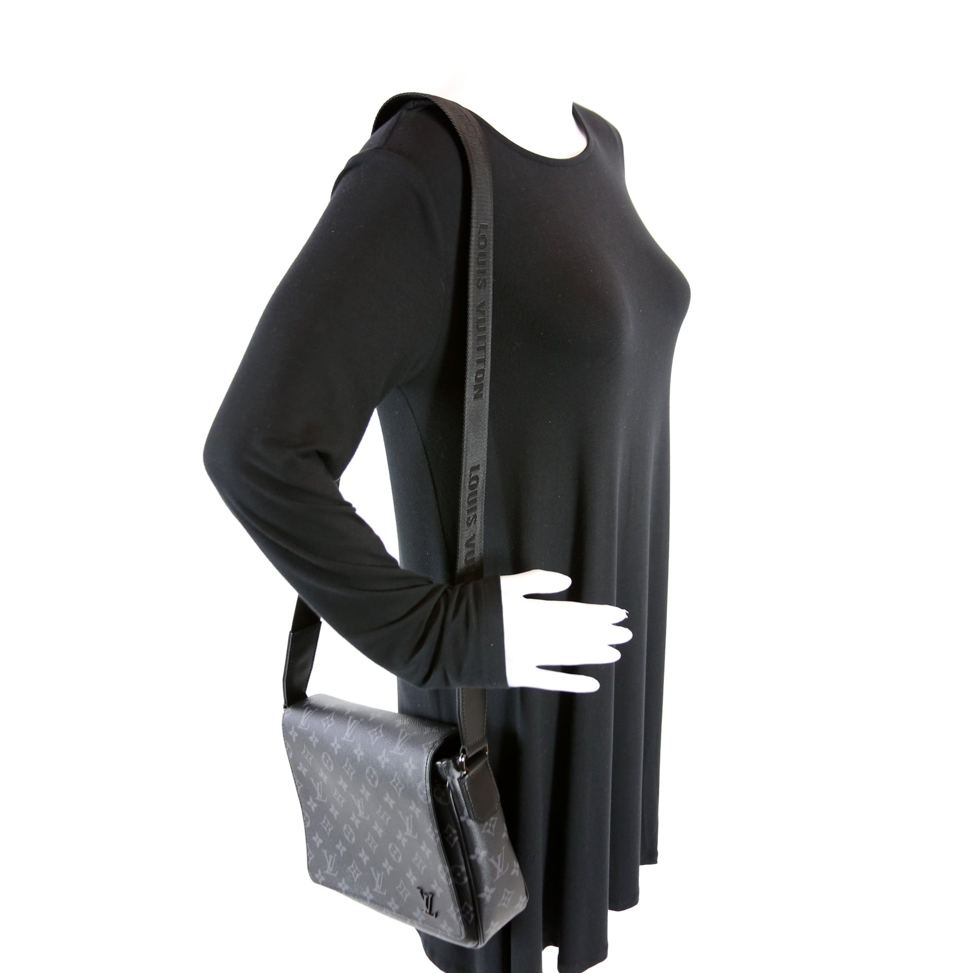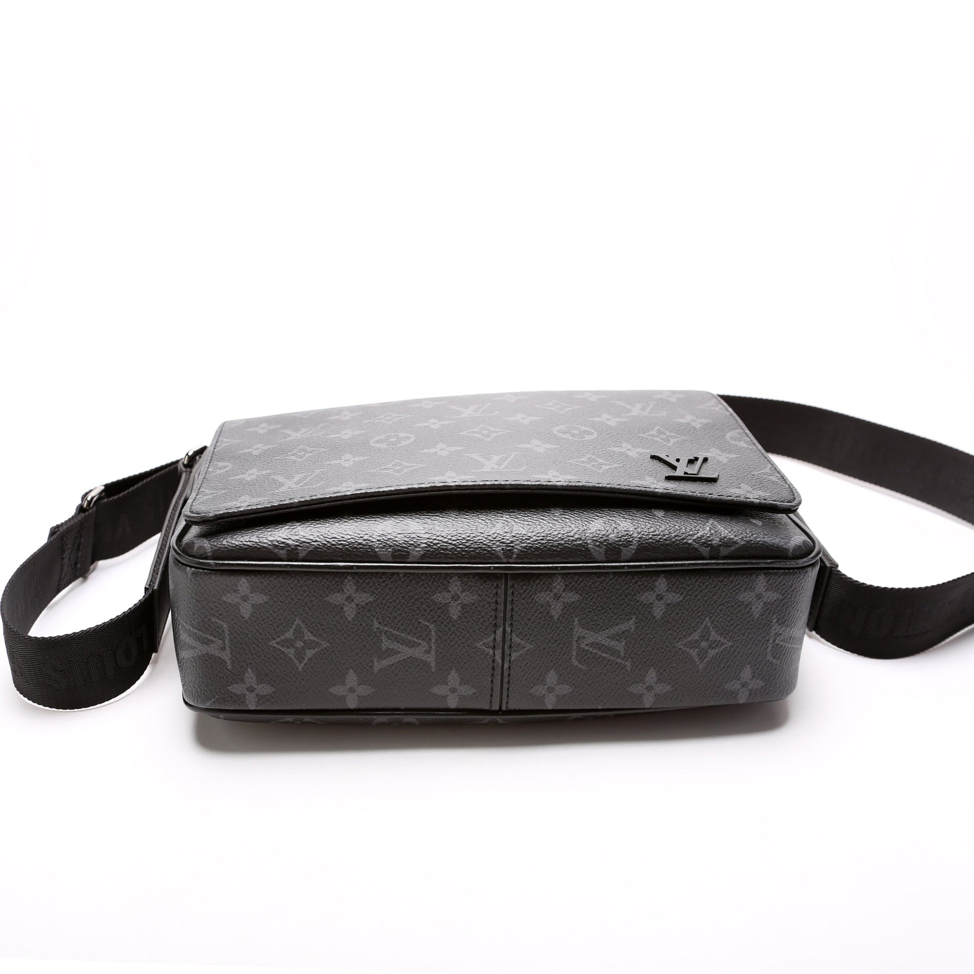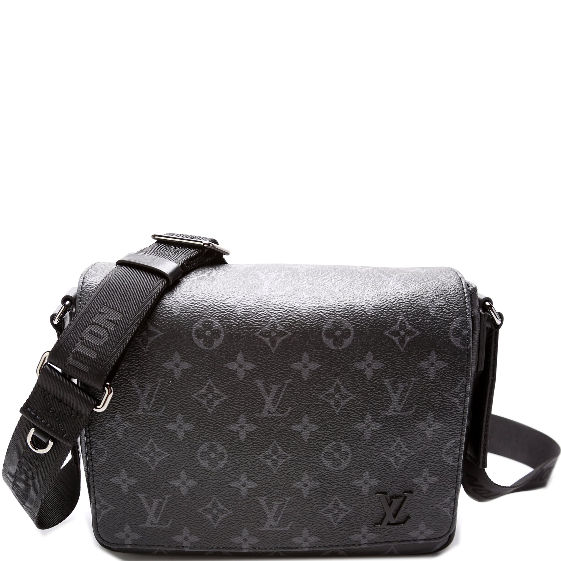 This Louis Vuitton District PM NV3is eye catching bag. The exterior is in the classic Louis Vuitton Monogram Eclipse coated canvas.