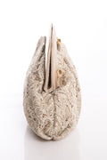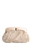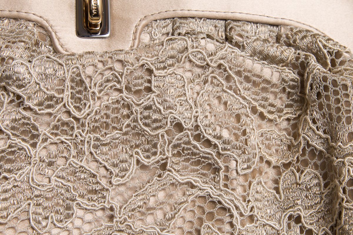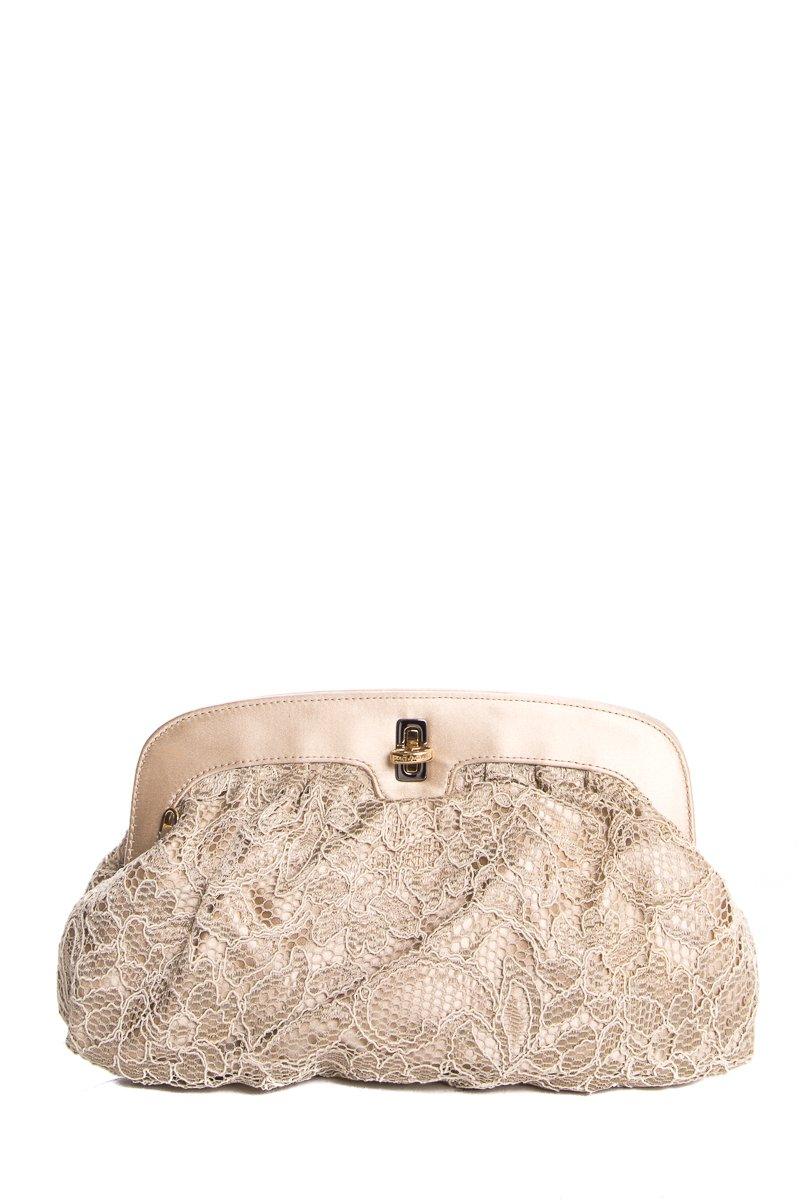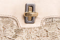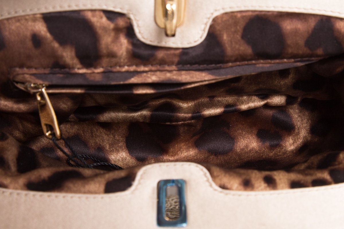Dolce & Gabbana Beige Lace Clutch with Two Tone Closure Leopard Interior. This item is in excellent condition with small mark on satin.