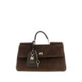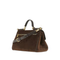 brown suede texture top handle adjustable detachable shoulder strap padlock detail gold-tone hardware