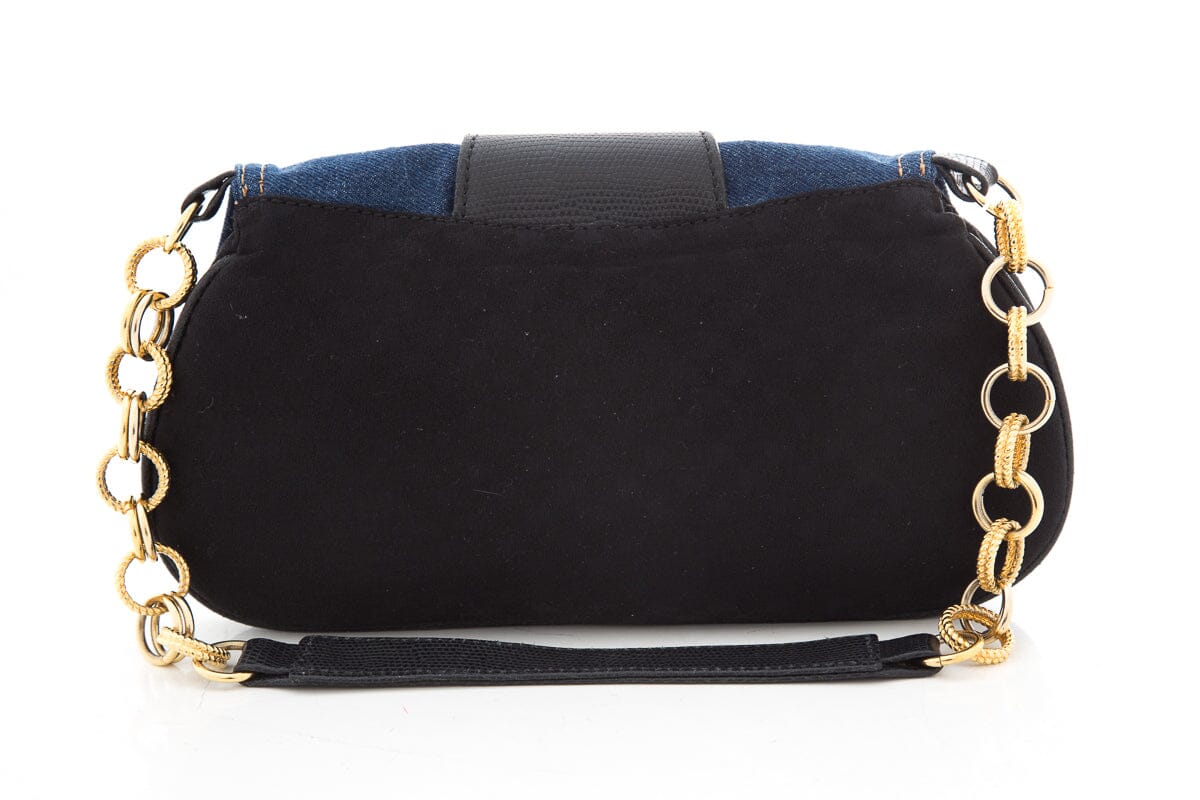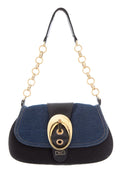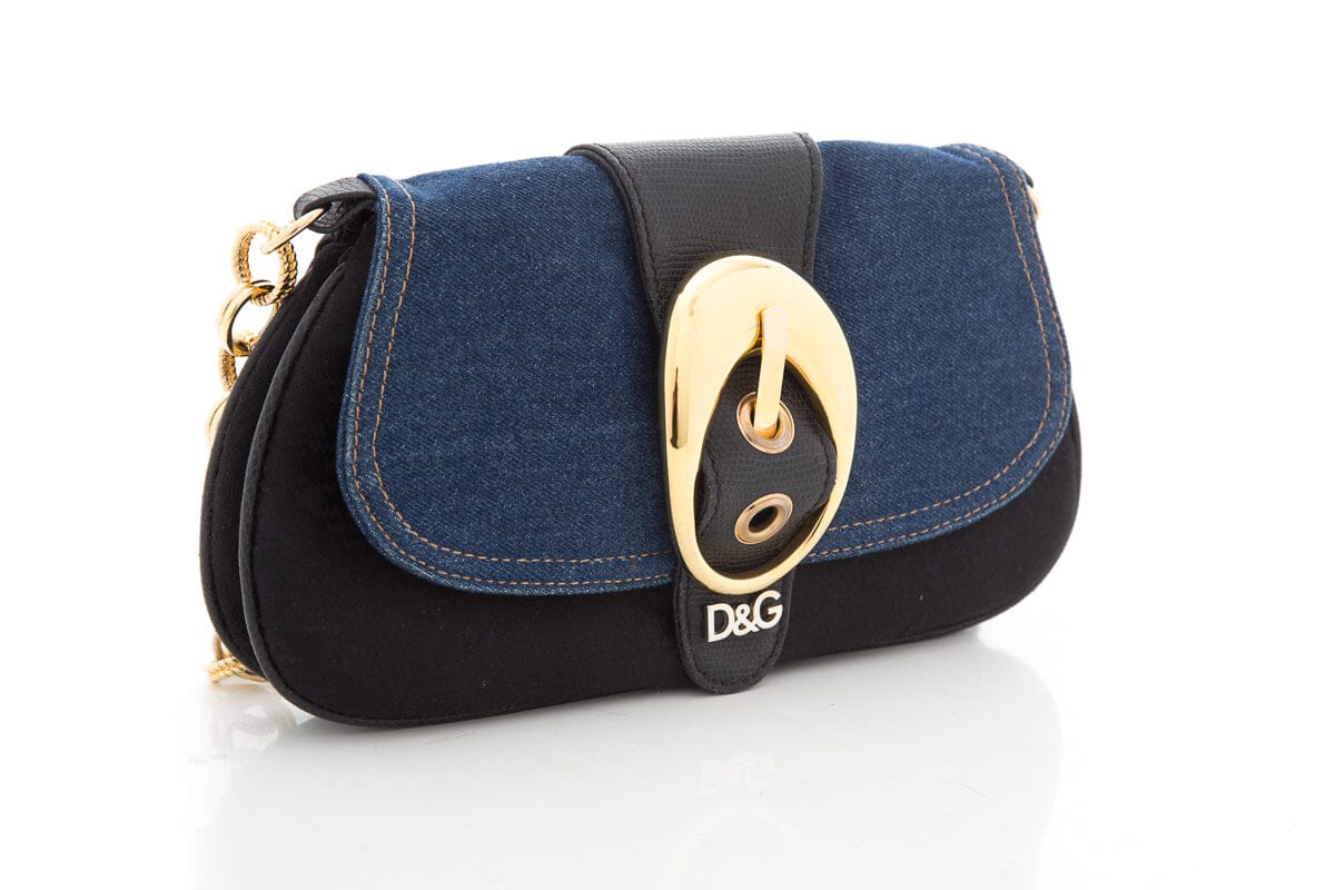 Dolce & Gabbana Denim Handbag with Large Gold Buckle Detail
