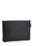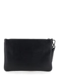 Clutch Black Removable wrist strap Top zip closure Logo letteirng on the front Silver tone metalware Leather Dimensions: 32x22x1 cm