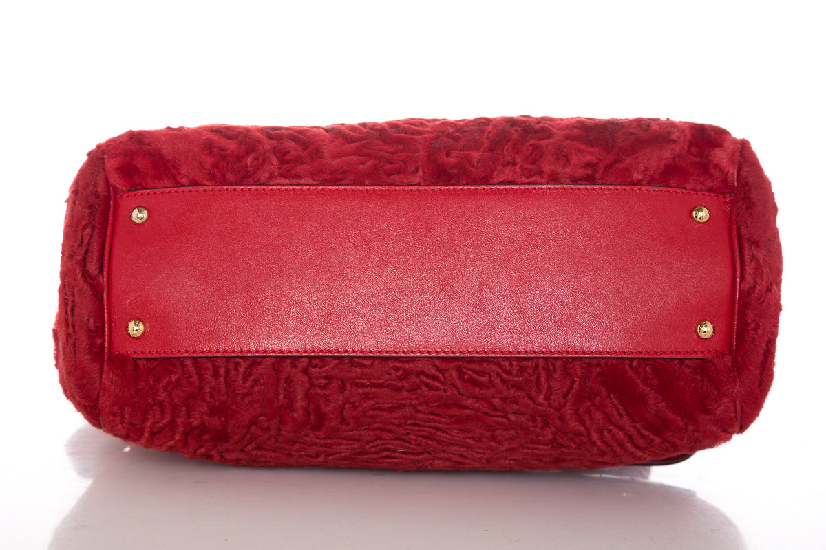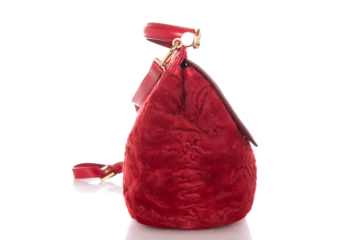 Dolce & Gabbana Red Fur & Leather Shoulder Bag