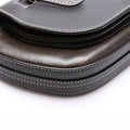 Exterior: The exterior leather is free from any rips or cracks. The exterior features one removable pouch. The pouch features one exterior zipper pocket and and two interior card slots.