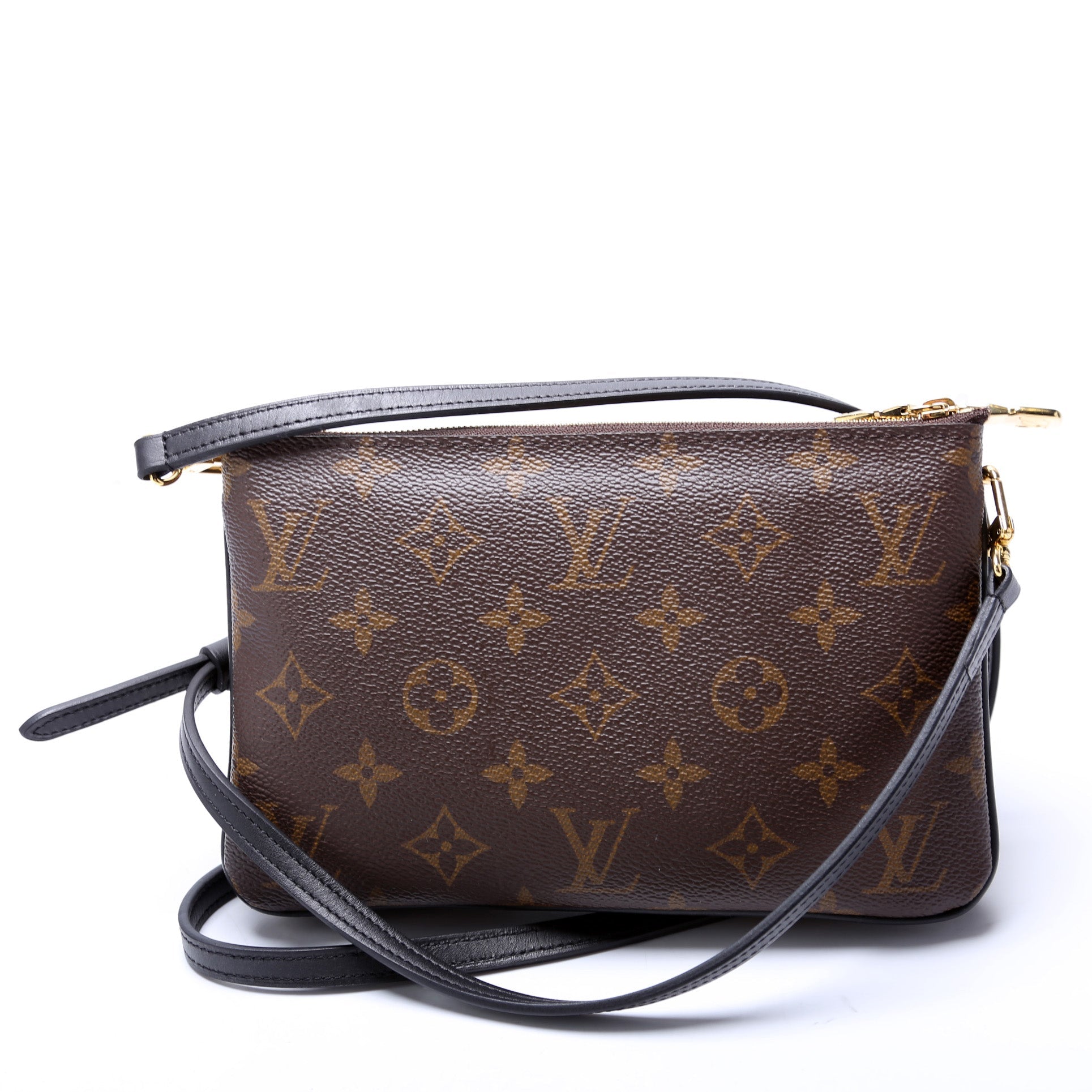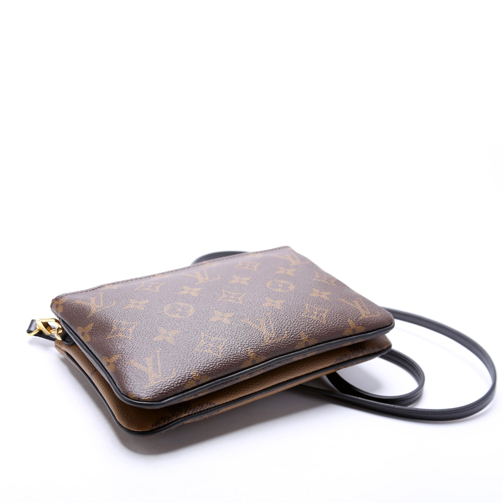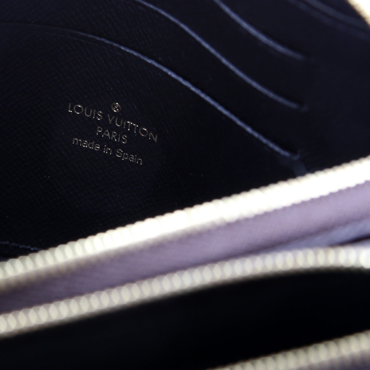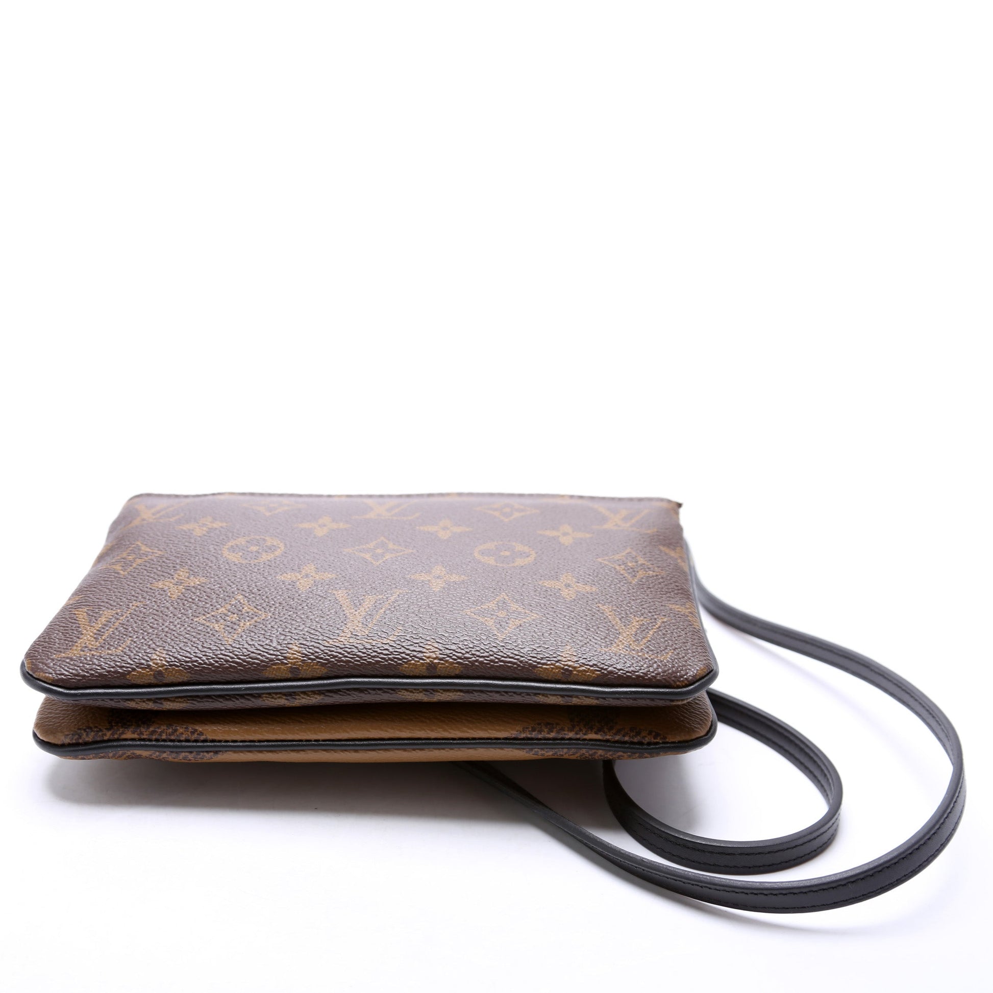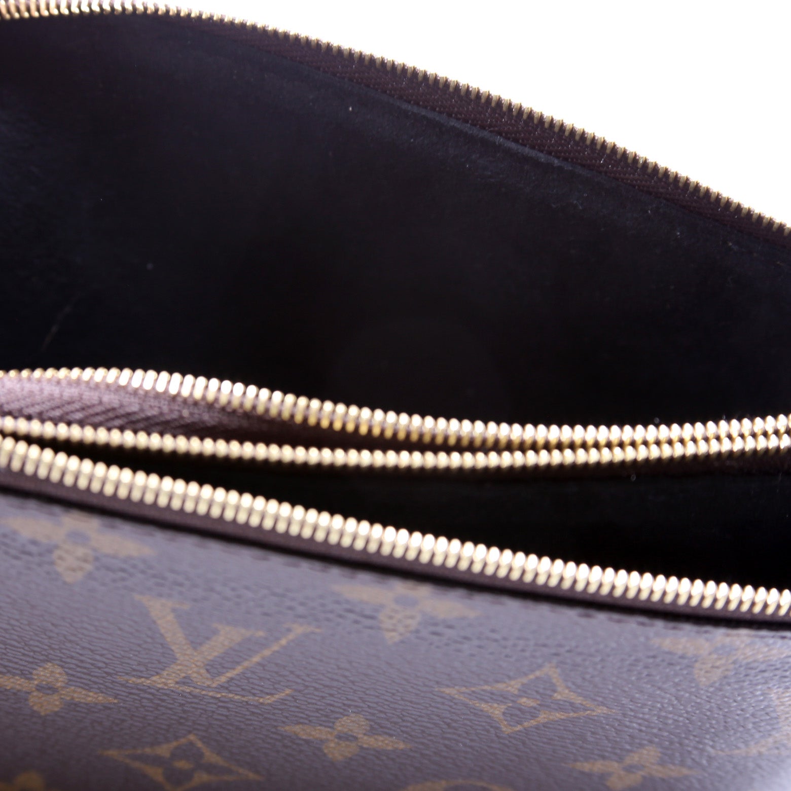This Louis Vuitton Double Zip Pochetteis eye catching bag. The exterior is in the Louis Vuitton Giant Monogram Rouge coated canvas.