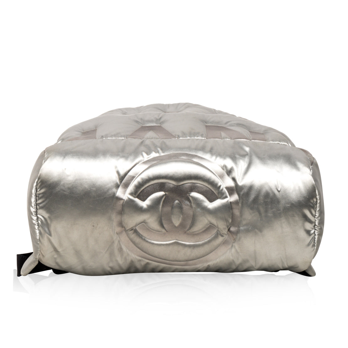 Chanel presents their nylon embossed doudoune backpack in silver. A true must have for any Chanel lover, this gorgeous piece is the perfect balance between fashion and function. Spacious enough to hold all your everyday necessities comfortably inside, the statement backpack also features silver hardware with the CC logo to add that extra touch. With zip closure, this backpack is luxurious, practical and refreshing. A well worthy addition to any luxury handbag collection, the backpack is a piece you won't regret investing in. A true statement piece that emphasises practicality.
