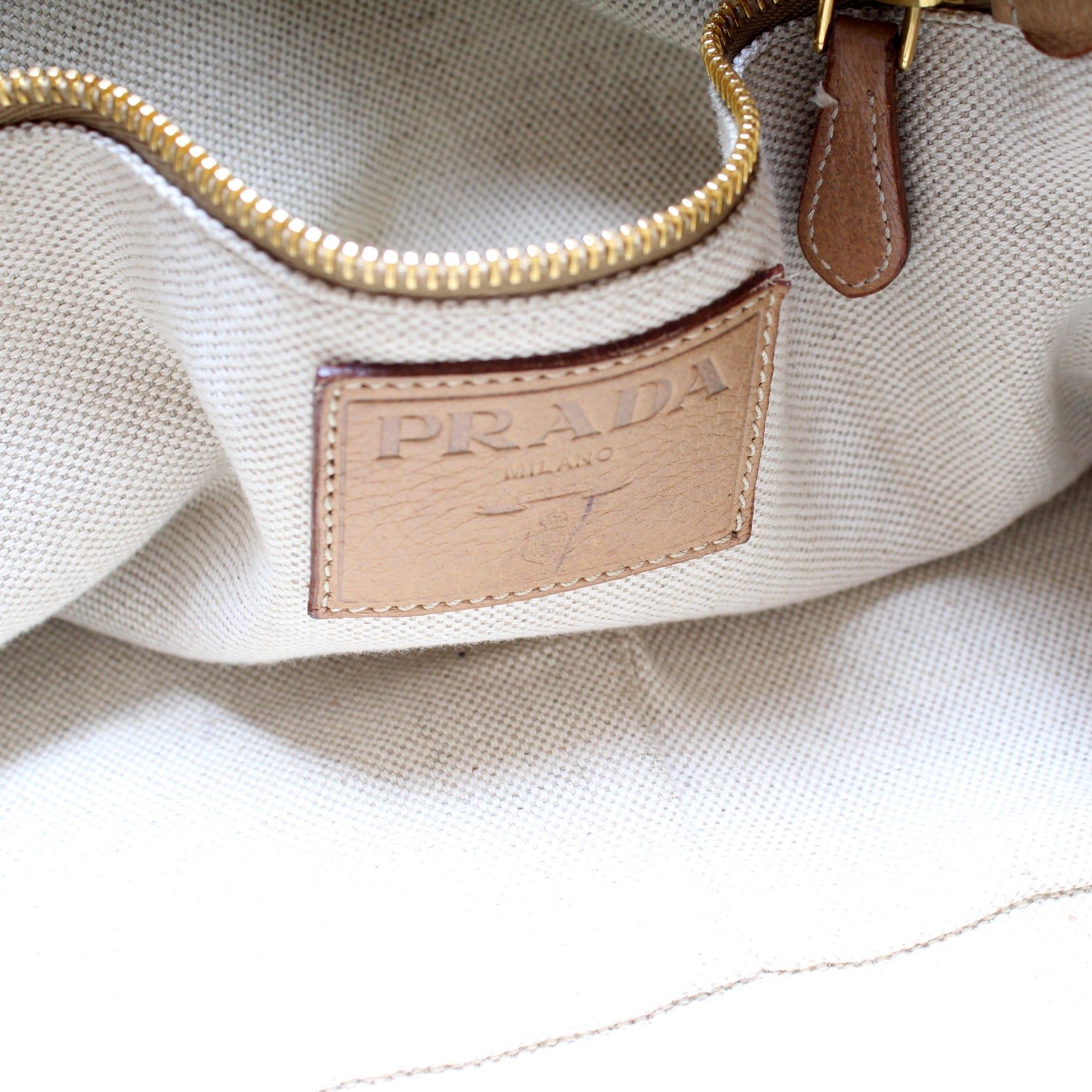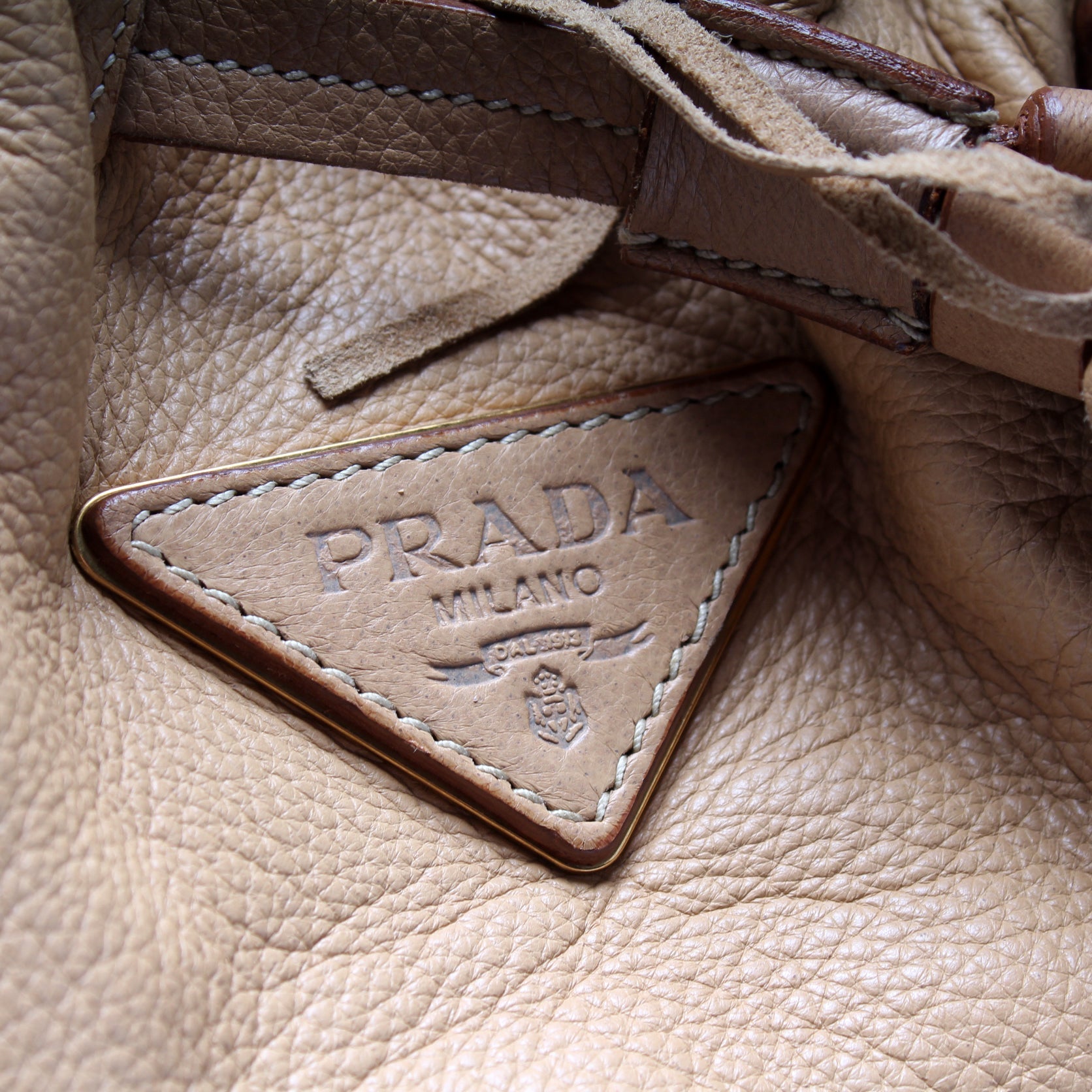 This Prada Drawstring Deerskin Toteis eye catching bag. The exterior is in the classic Prada leather.