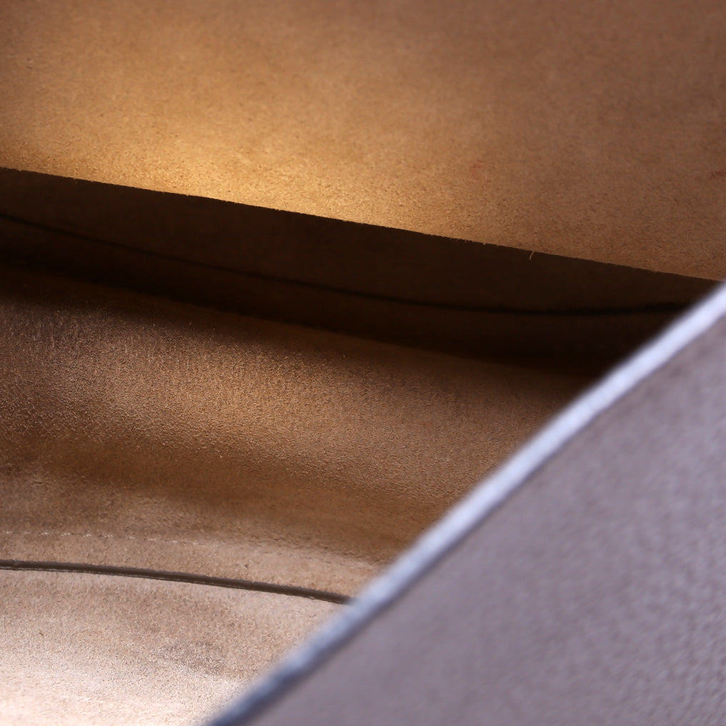 Exterior: The exterior leather is free from rips or cracks. The pipping shows minimal wear.