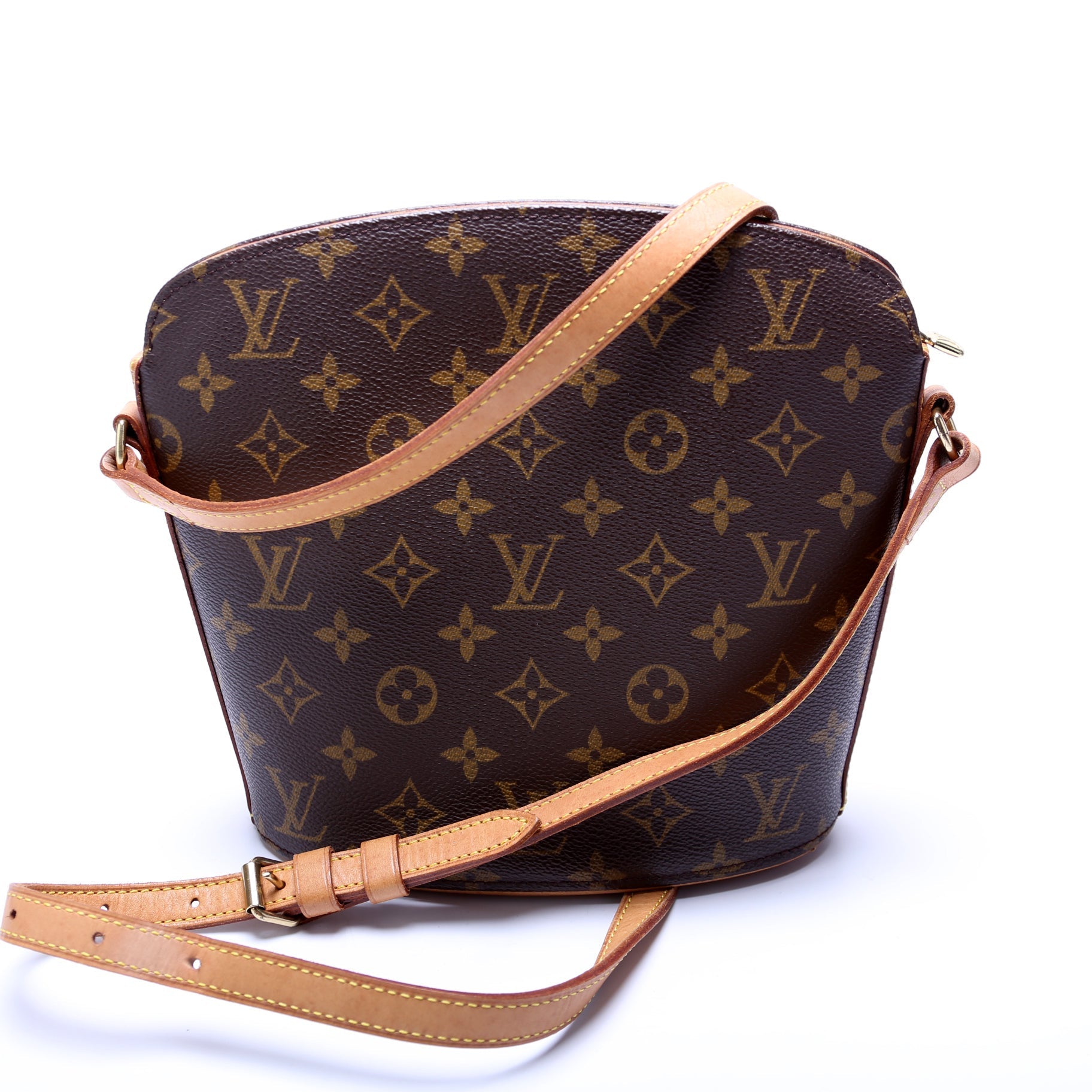This Louis Vuitton Drouotis eye catching bag. The exterior is in the classic Louis Vuitton Monogram coated canvas.