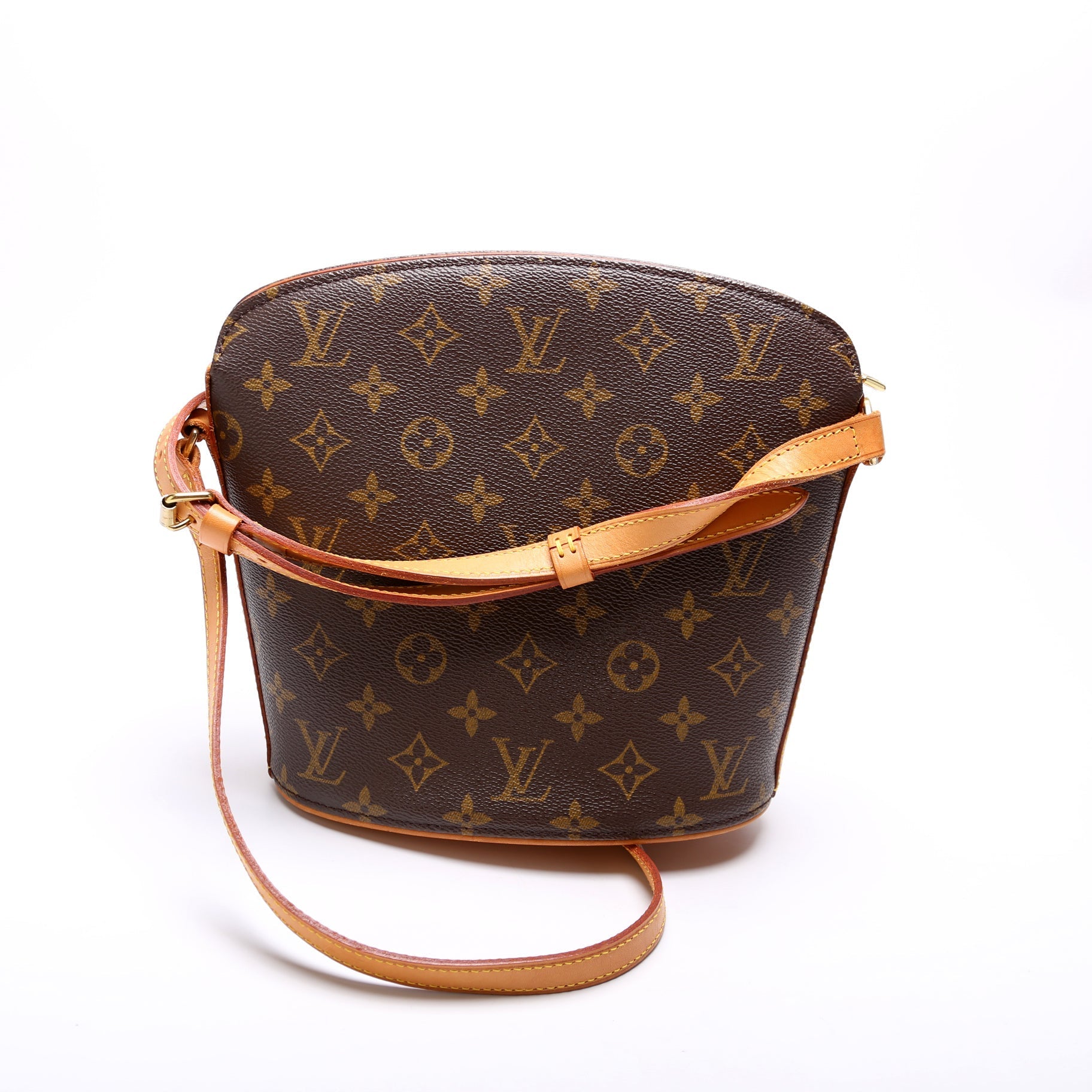 This Louis Vuitton Drouotis eye catching bag. The exterior is in the classic Louis Vuitton Monogram coated canvas.