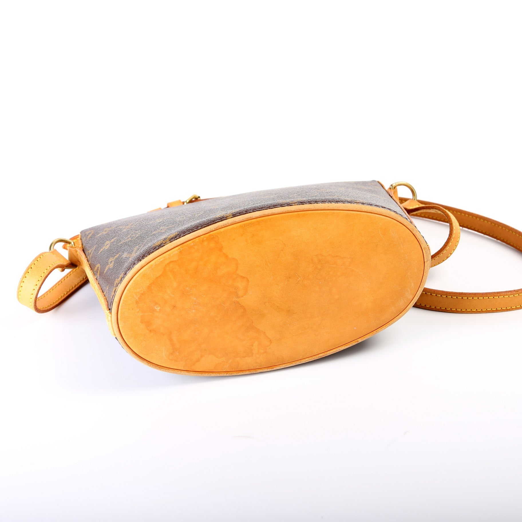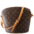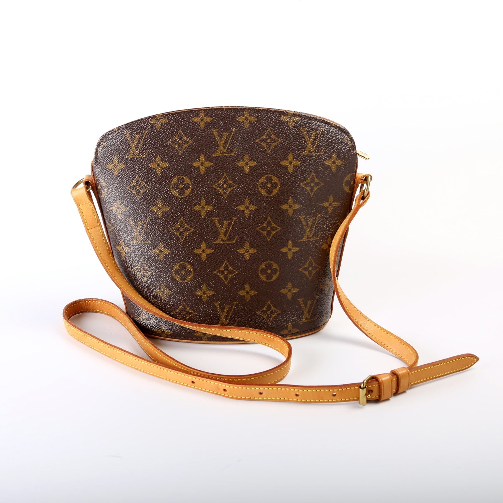 This Louis Vuitton Drouotis eye catching bag. The exterior is in the classic Louis Vuitton Monogram coated canvas.