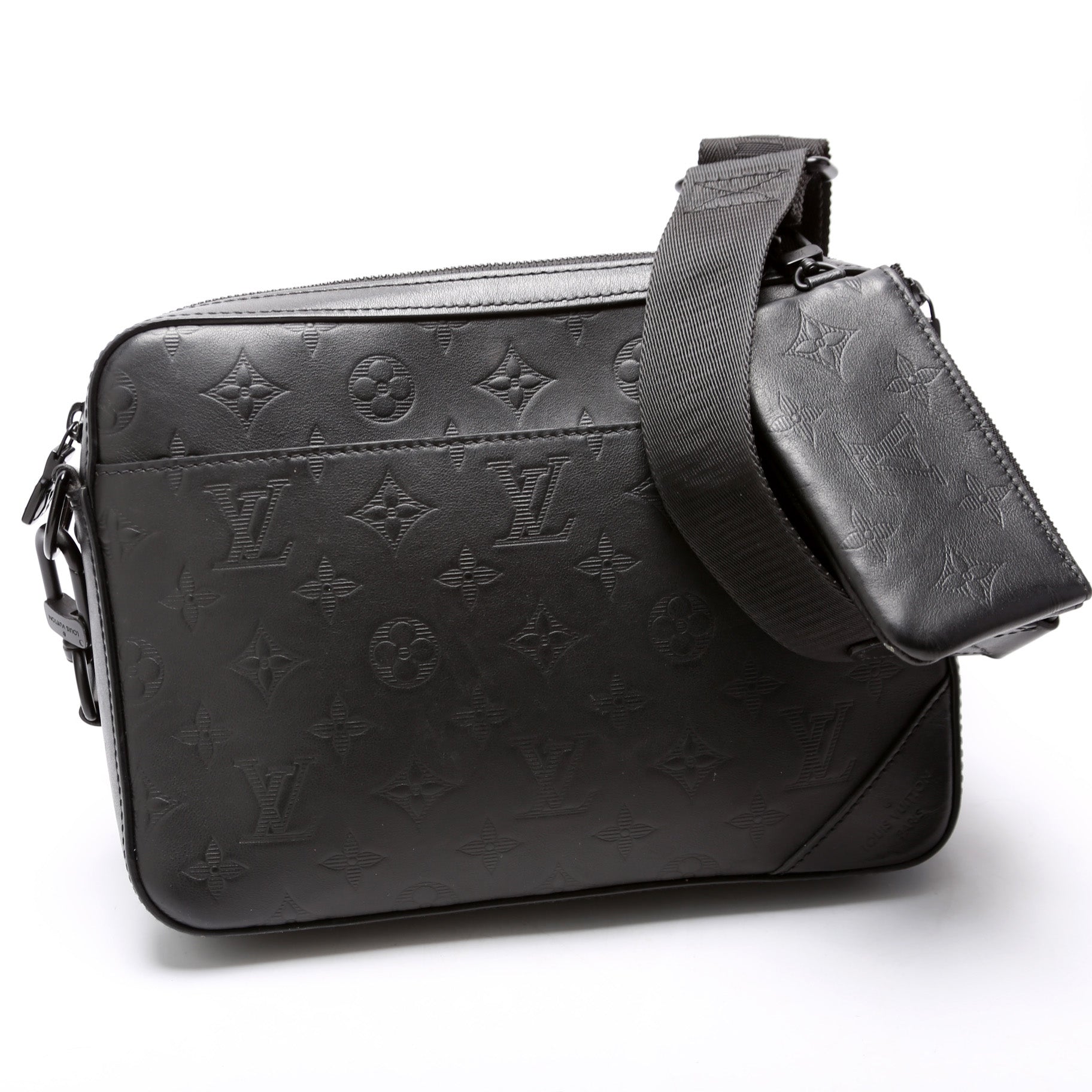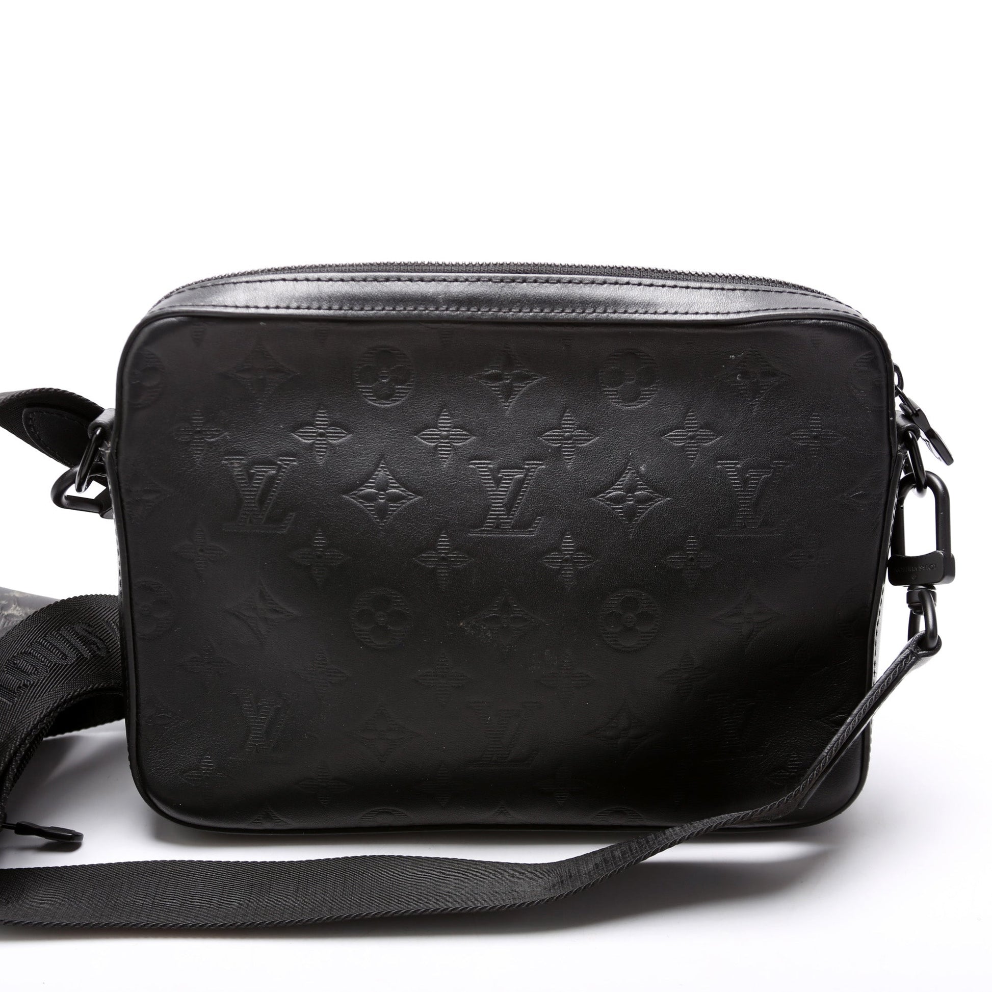 This Louis Vuitton Duo Messengeris eye catching bag. The exterior is in the classic Louis Vuitton Monogram Shadow leather.