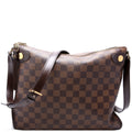 This Louis Vuitton Duomo Messengeris eye catching bag. The exterior is in the classic Louis Vuitton Damier Ebene coated canvas.