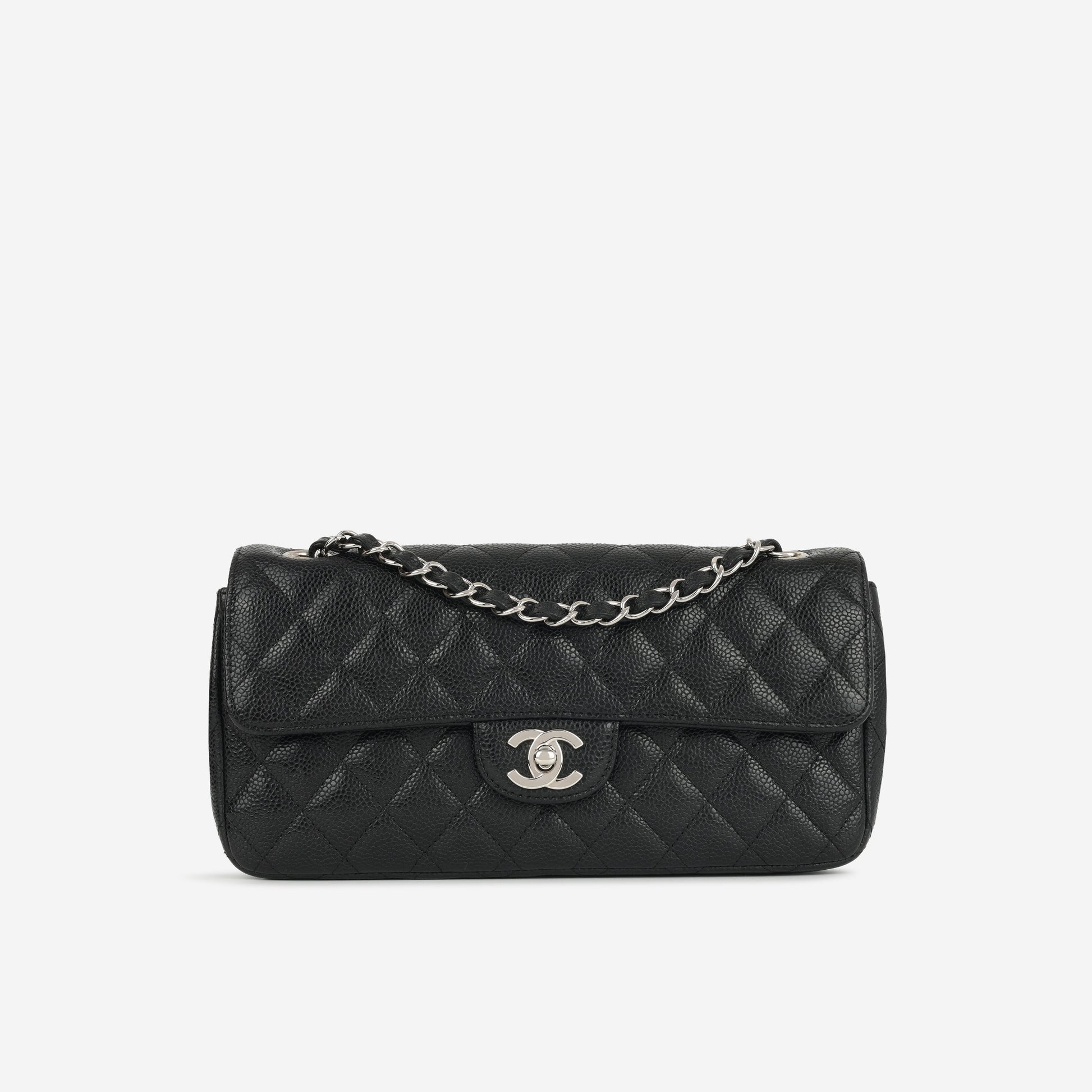 Chanel East West Flap Bag Black Caviar Silver Hardware