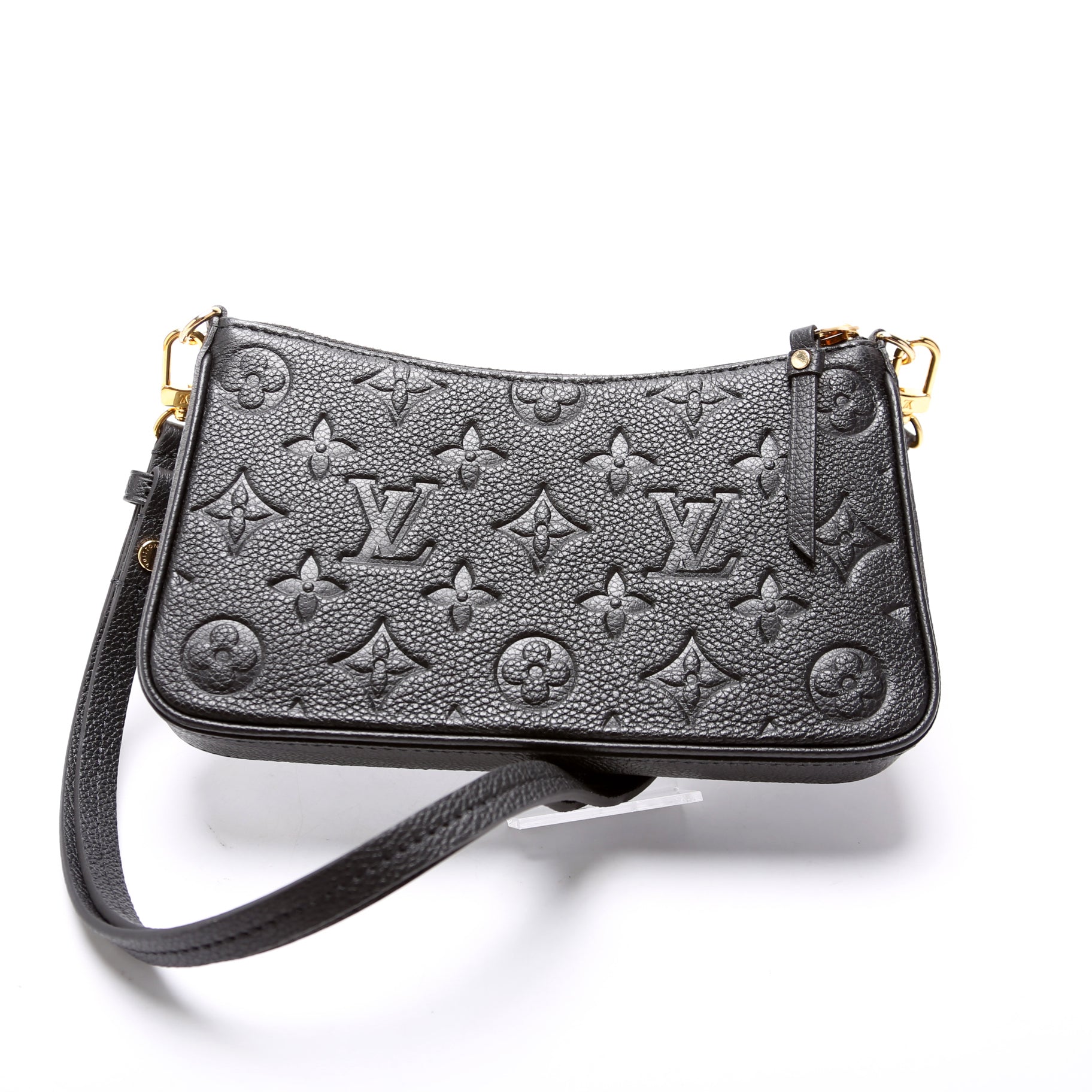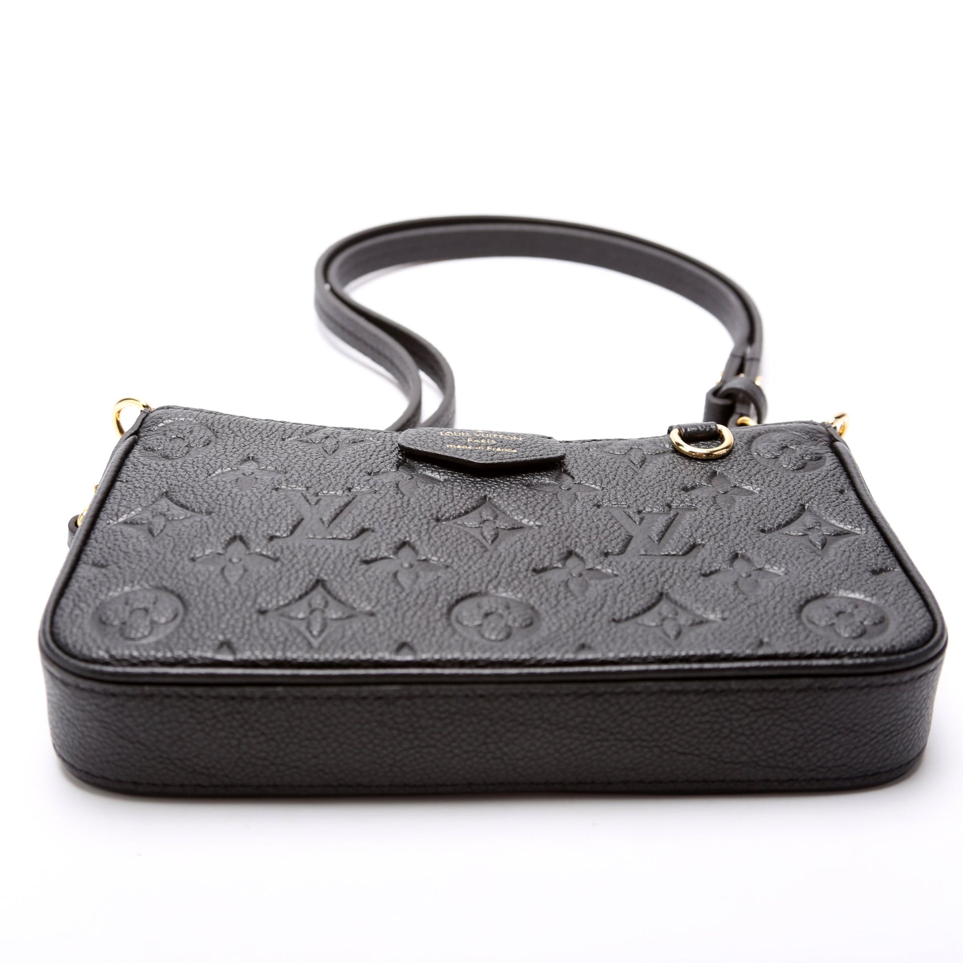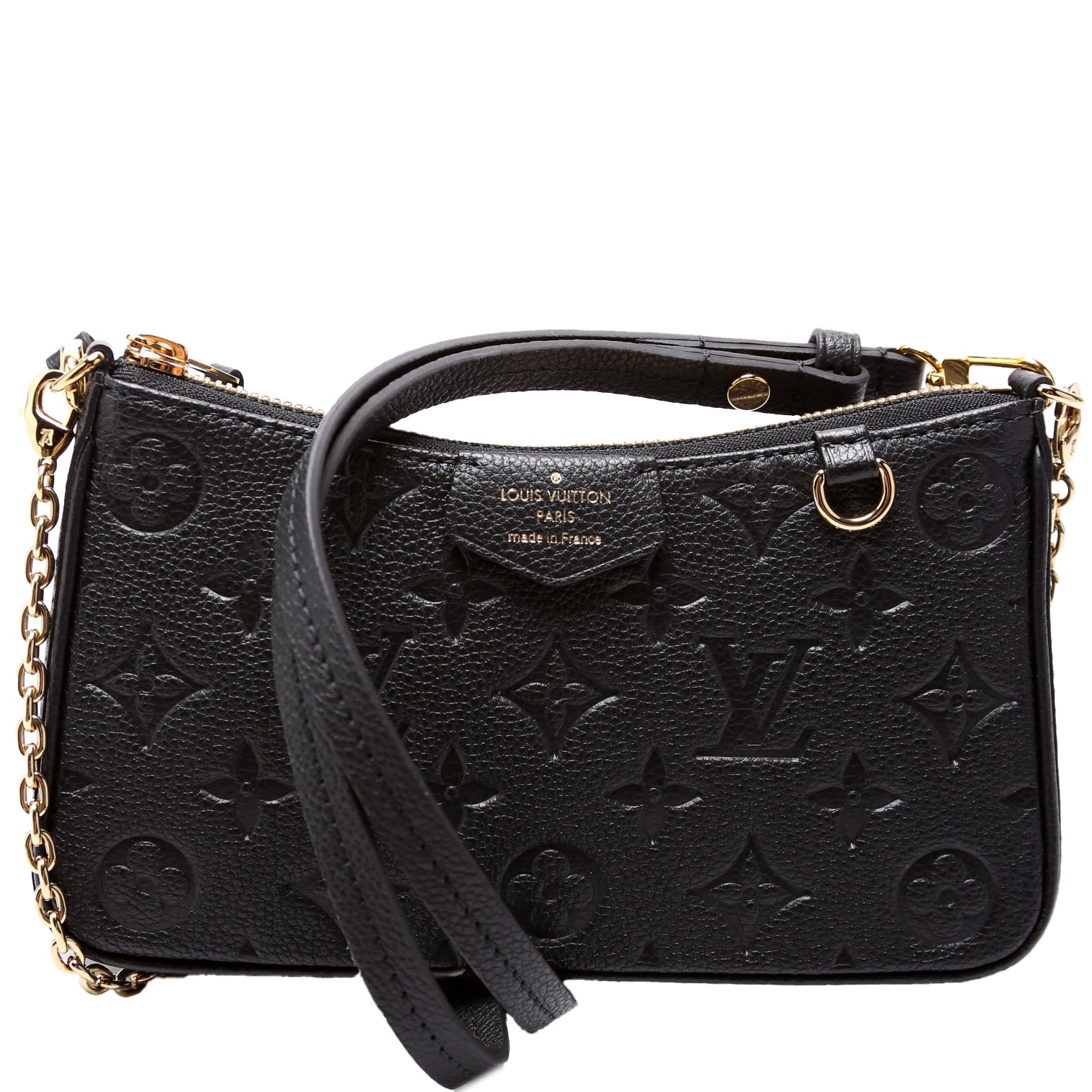 This Louis Vuitton Easy Pouch on Strap is d 100% . The exterior is in the classic Louis Vuitton Empreinte leather.