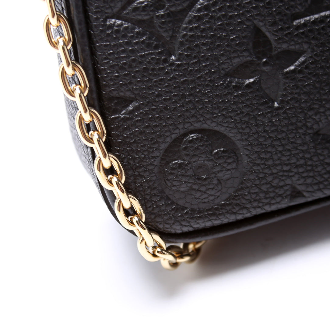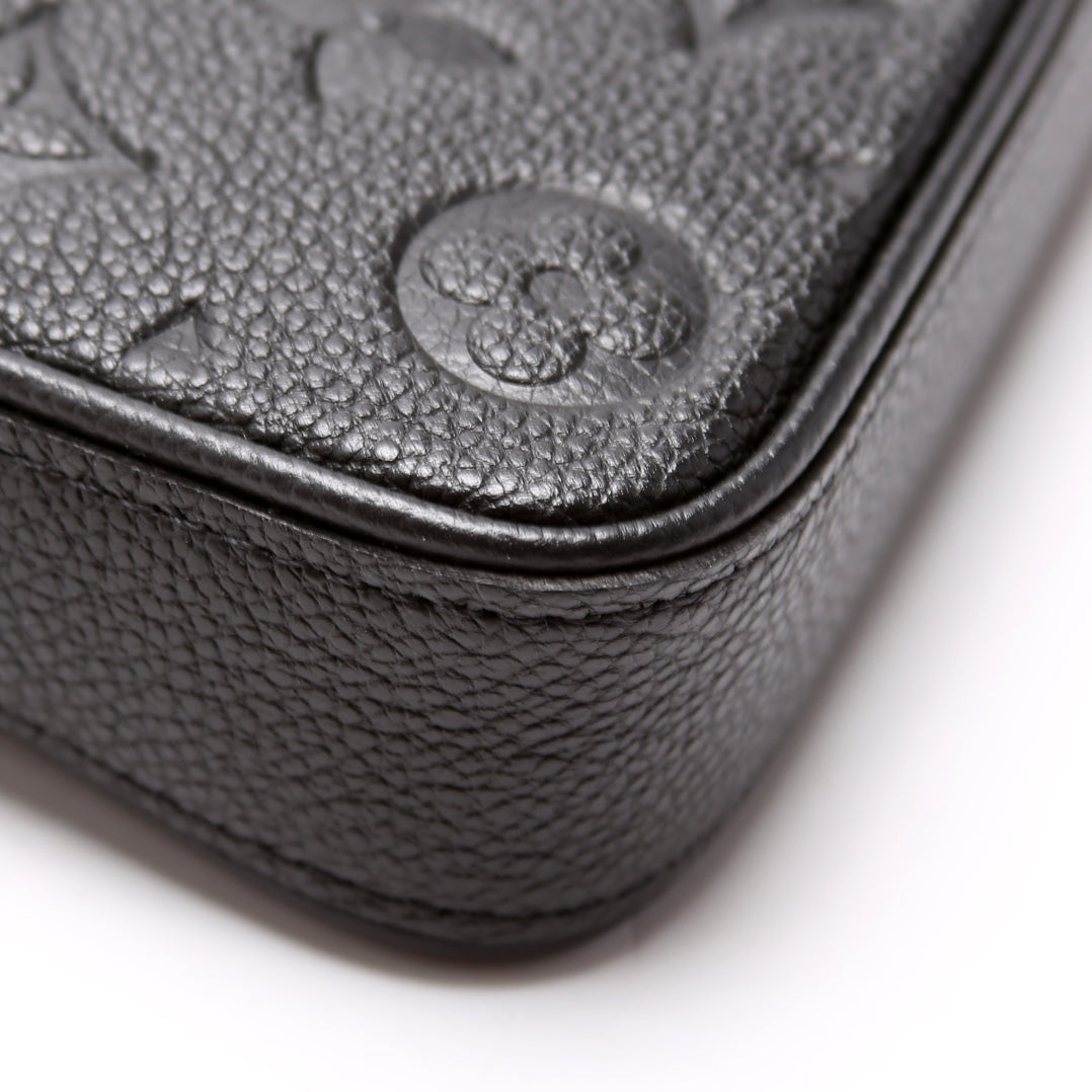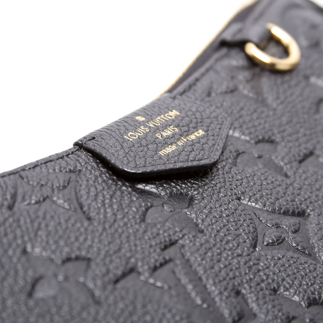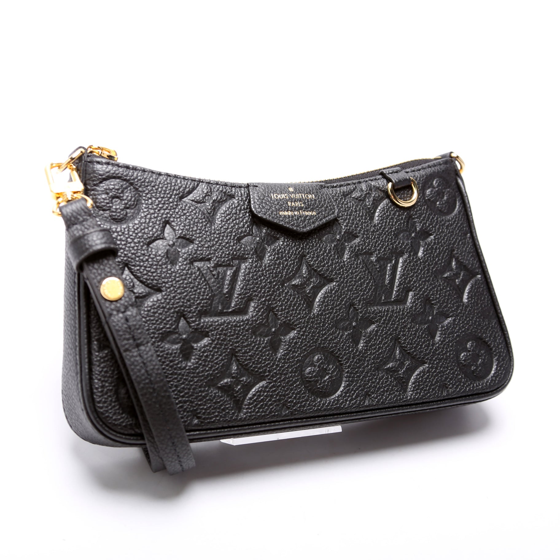 This Louis Vuitton Easy Pouch on Strap is d 100% . The exterior is in the classic Louis Vuitton Empreinte leather.
