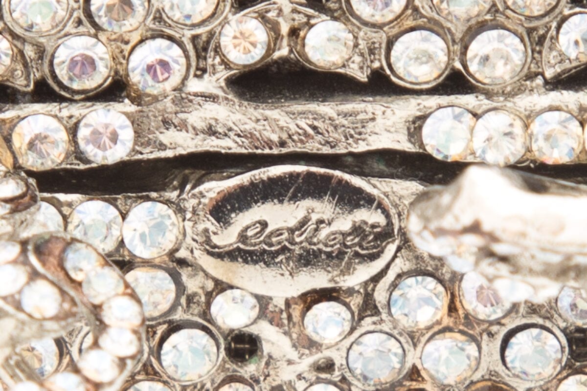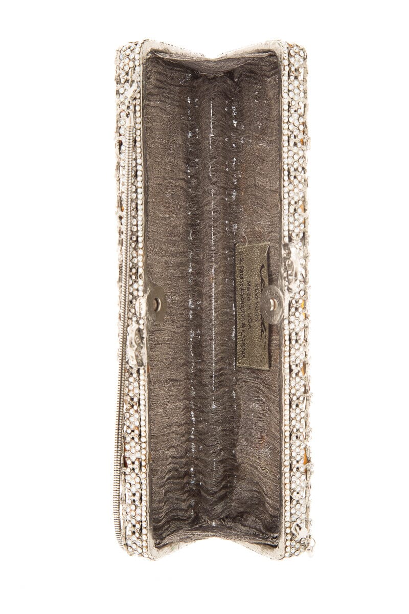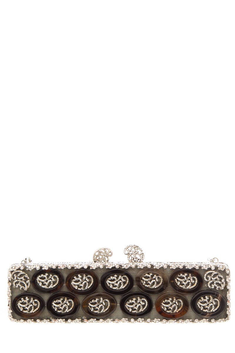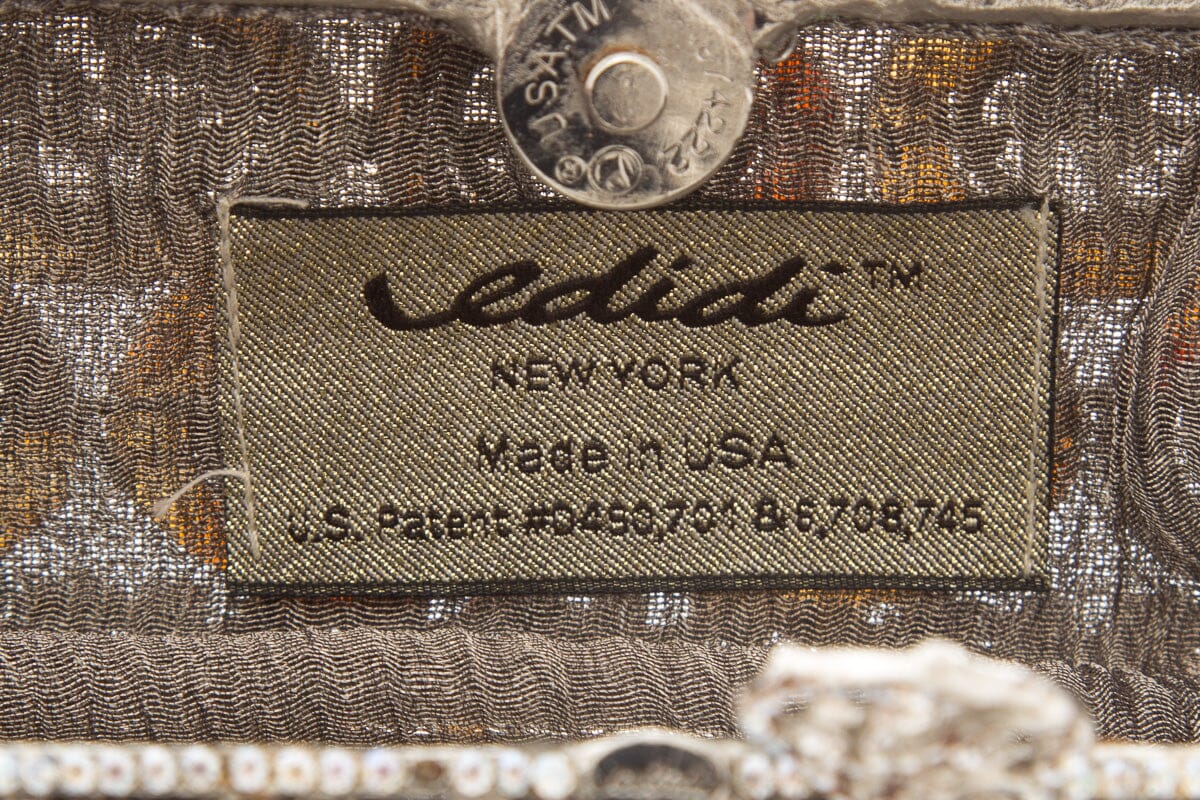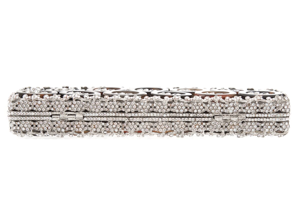 Edidi Silver Rectangle Clutch with Stones Throughout. This item is in good condition; missing some crystals.