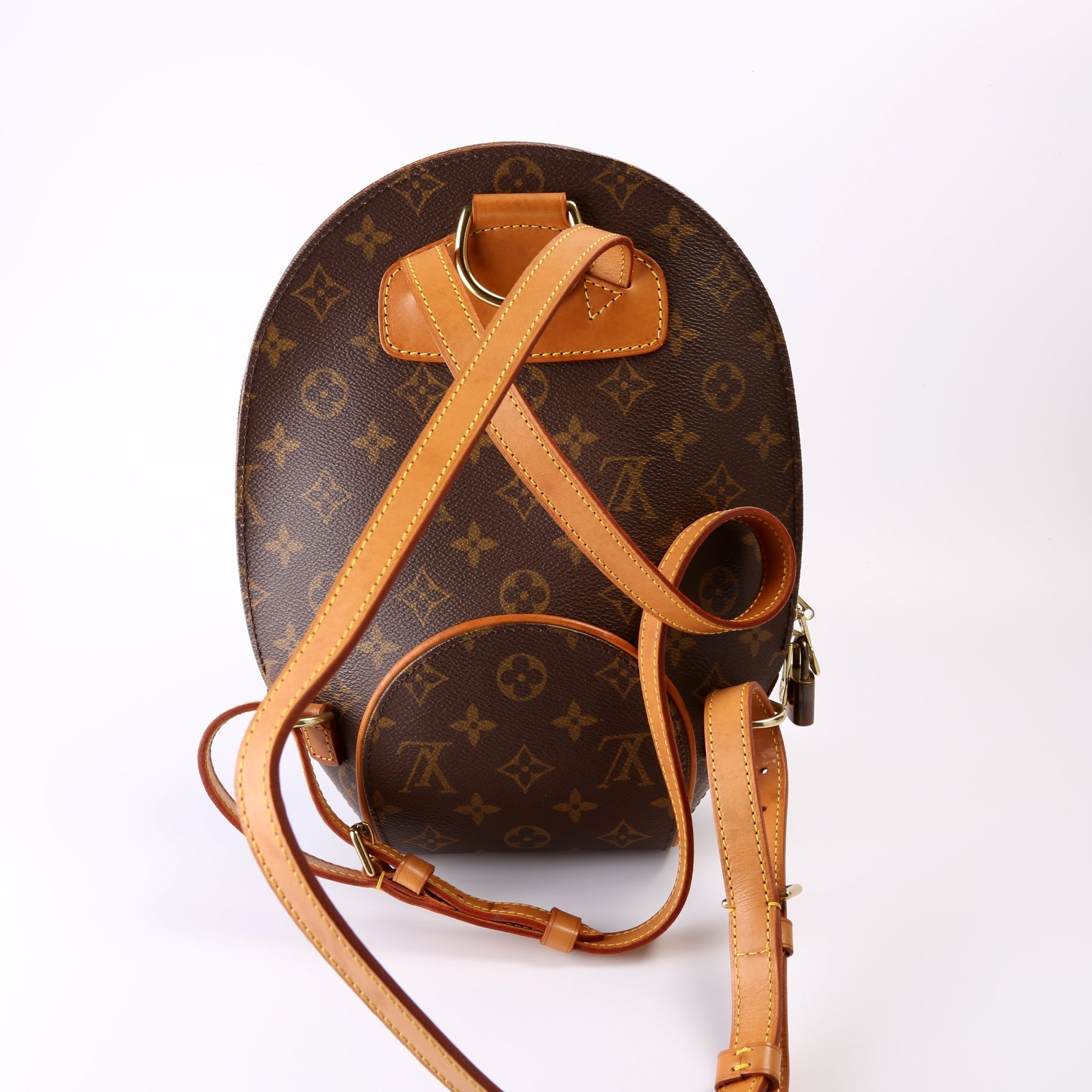 This Louis Vuitton Ellipse Backpackis eye catching bag. The exterior is in the classic Louis Vuitton Monogram coated canvas.