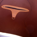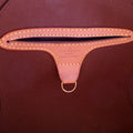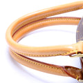 Handle: The leather handles show light wear and discoloration.